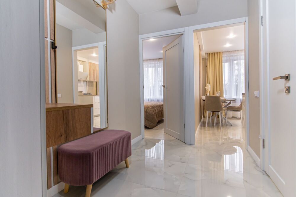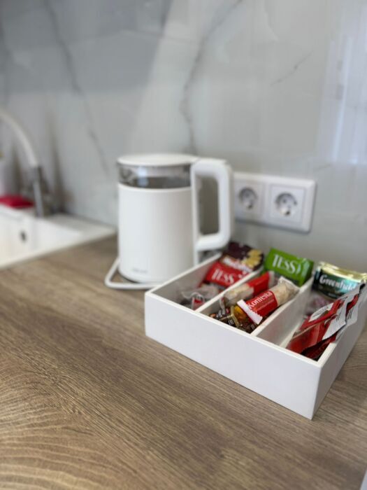В квартире имеется все необходимое для комфортного проживания: кондиционер, фильтр для воды, двухспальная кровать с ортопедическим матрасом, большой смарт телевизор с подпиской Иви, Wi-Fi, раскладной диван (доп.место) просторный шкаф, кухня (полностью оборудована и укомплектована всей необходимой посудой), ванная комната (шампуни, кондиционер, гель для душа) постельное белье, полотенца, тапочки, утюг, фен, гладильная, сушилка для белья.