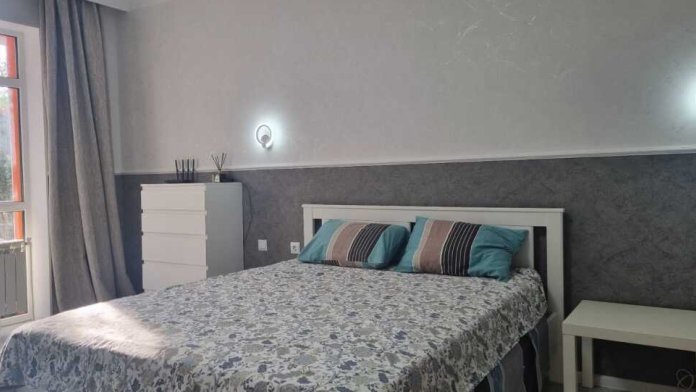 В номере: телевизор, wi-fi, стиральная машина, посудомоечная машина, утюг, вся посуда, плита, микроволновая печь, пылесос. На окнах установлены москитные сетки. Кровать двуспальная, диван, шезлонги.