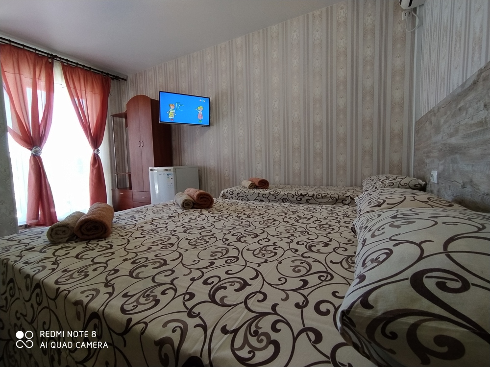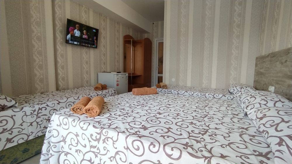 Пансионат «Раатлан» находится в спальном районе города. До моря 7 минут ходьбы.Пансионат предлагает своим гостям отдых в однокомнатных номерах на 2,3,4,5 мест и двухкомнатных номерах на 2,3,4,5 мест с питанием и без. В каждом номере отдельный санузел с душем, телевизор, холодильник, кондиционер,также возле каждого номера находится столик со стульями. Не выходя со двора, Вы можете отведать с любовью приготовленные блюда (вкусно и недорого) . Вода холодная и горячая - постоянно. Бесплатный wi-fi интернет. Мы всегда рады гостям!