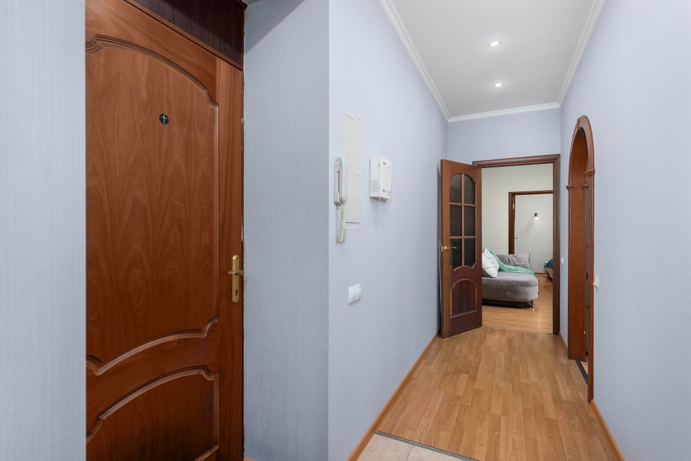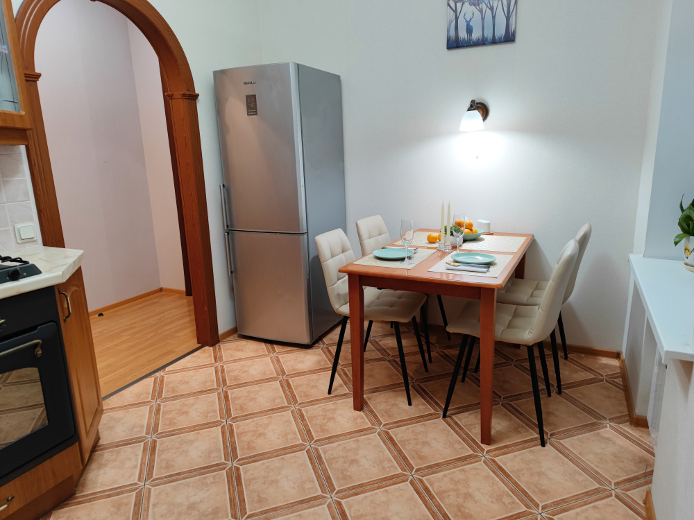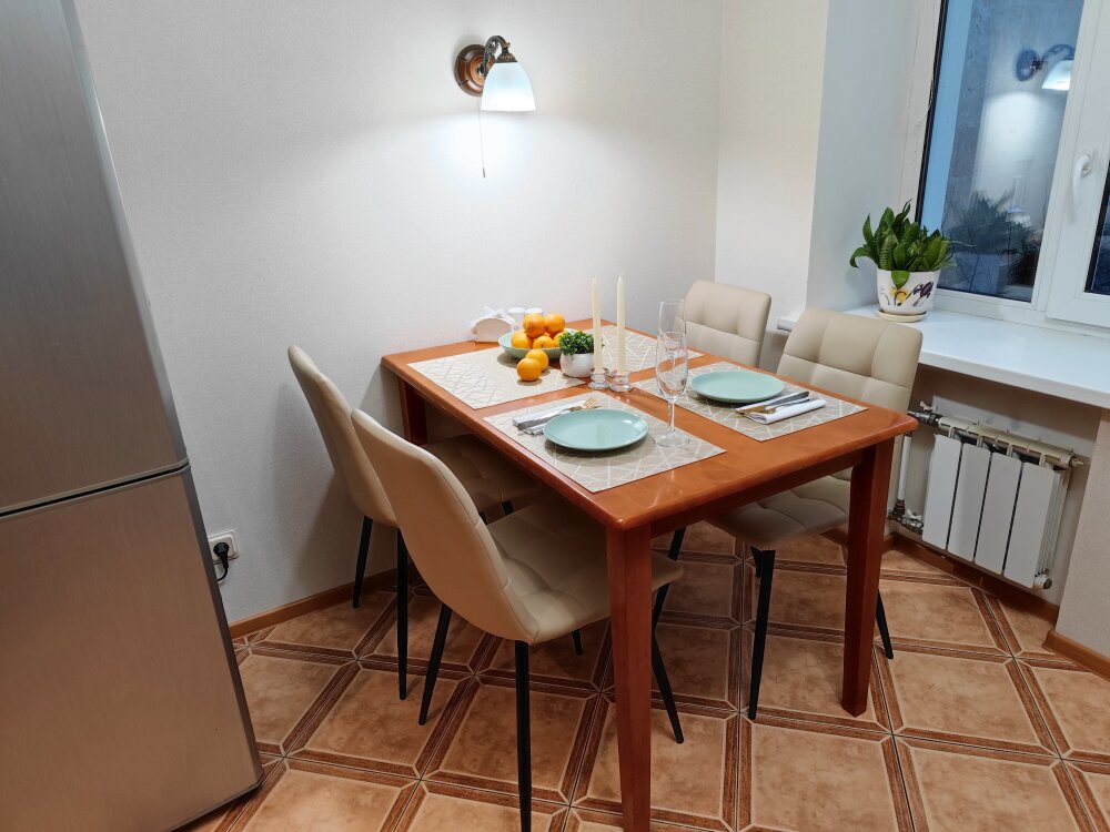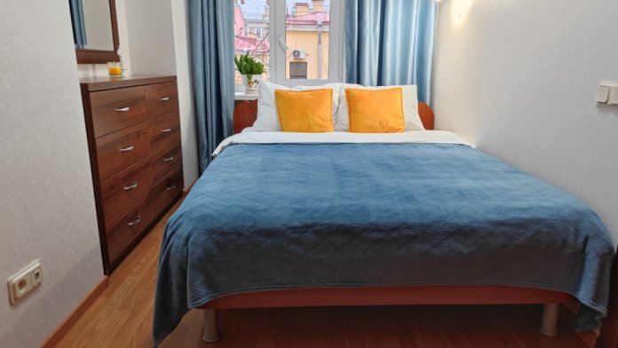 Квартира располагает двумя комнатами - проходная гостиная с раскладным диваном и спальня с двуспальной кроватью. Мы позаботились о вашем комфорте - модель дивана выбрана для удобного ежедневного сна, а на кровати вас ждет ортопедический матрас средней жесткости. Шторы в гостиной с высокой степенью затемнения, в спальне шторы блэкаут, что спасёт вас во время летних белых ночей.