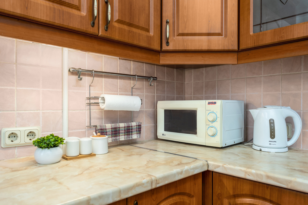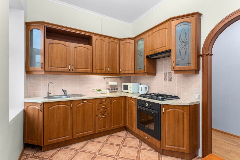 - На кухнях наших апартаментов вы найдёте такие мелочи как чай с конфетами, сахар, соль, подсолнечное масло.