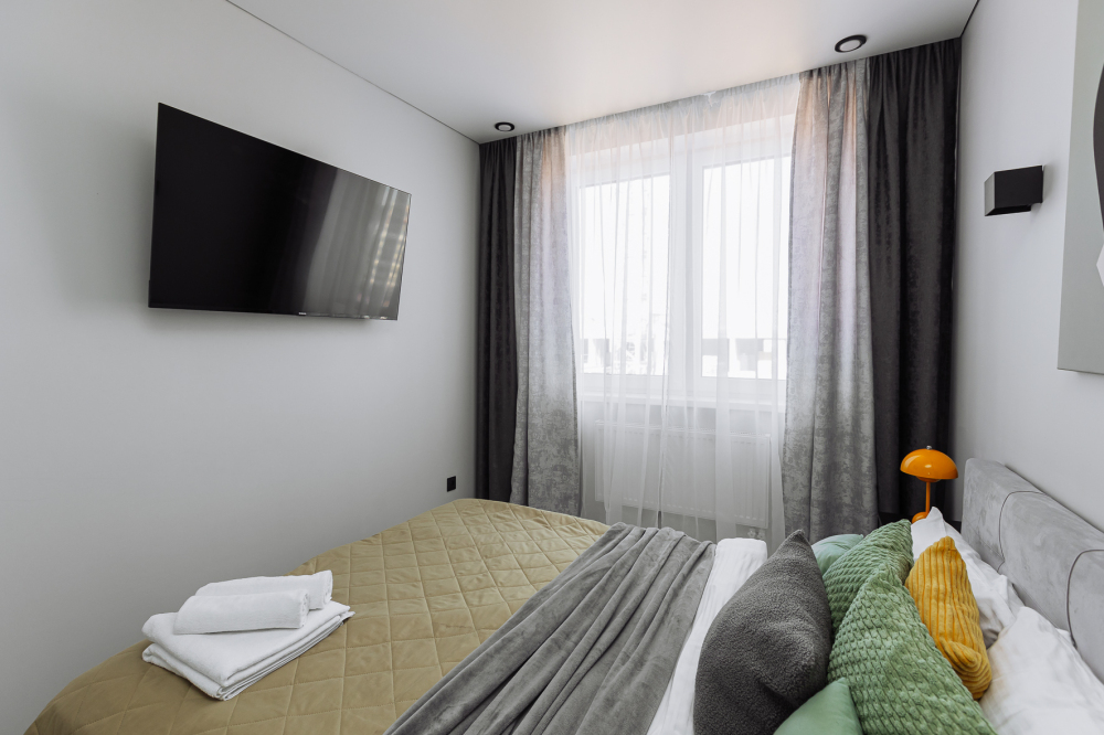 В квартире полноценная спальня и отдельная кухня с уютным балконом, у нас с комфортом можно разместиться 2 взрослым.