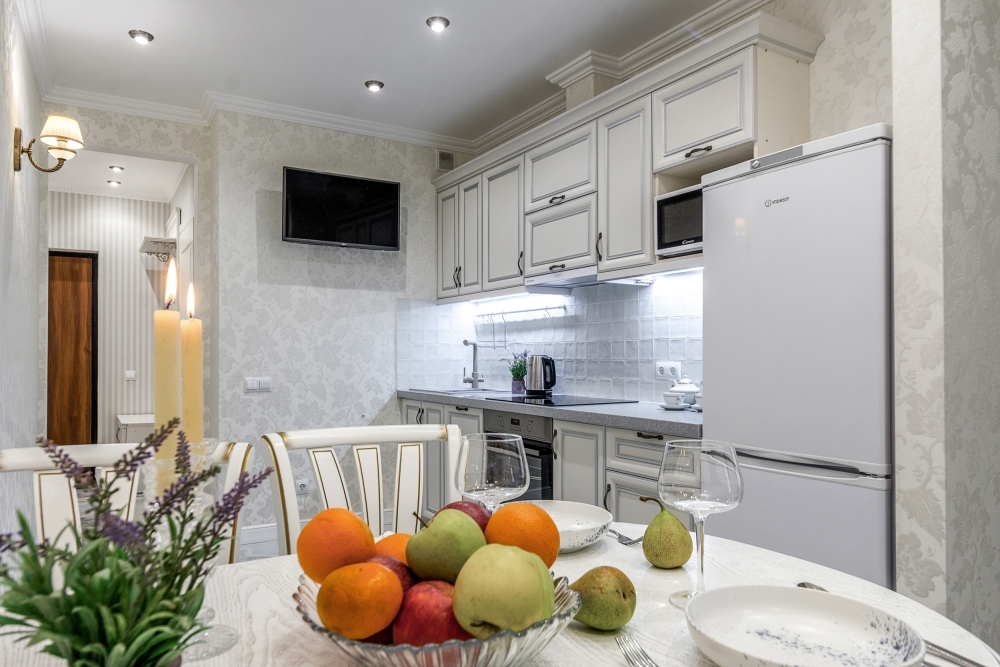 Полностью оборудованная кухня - мы встречаем гостей с полным комплектом посуды, а также современной бытовой техникой. Также есть посудомоечная машина и встроенный фильтр чистой воды.