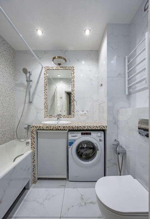 Квартира оснащены стиральной машиной, феном, гигиеническим душем. Гладильная доска и утюг также находятся в доступе для гостей. Белоснежное постельное белье, комплект полотенец на каждого гостя.