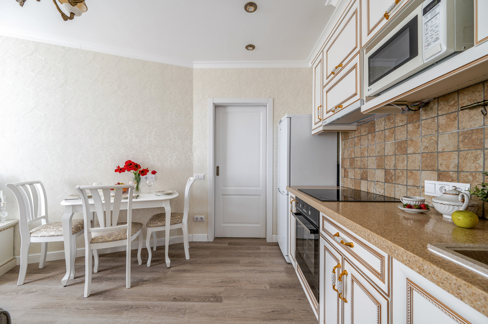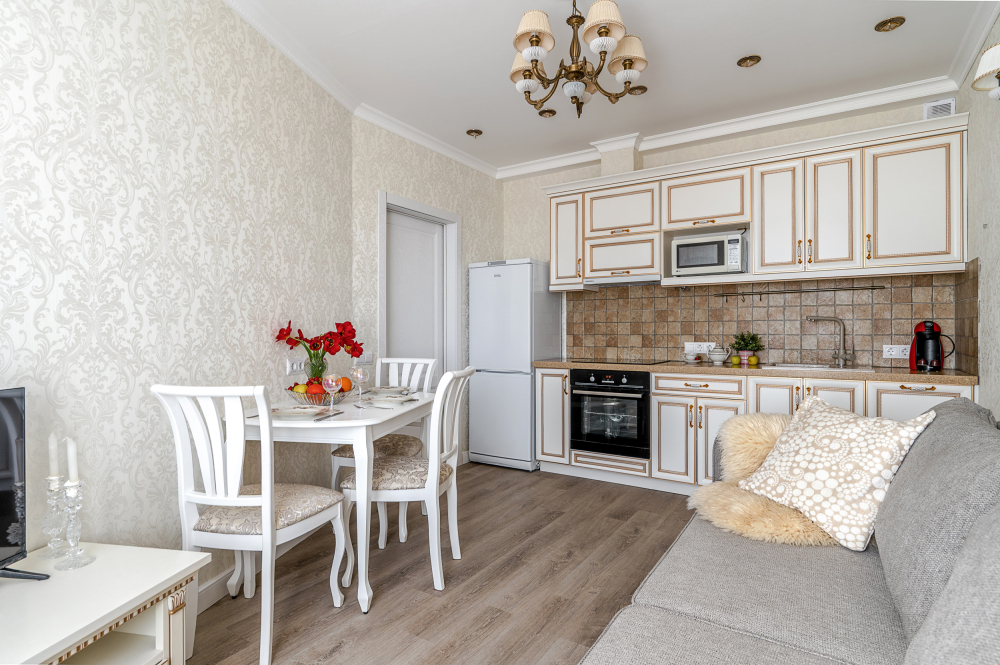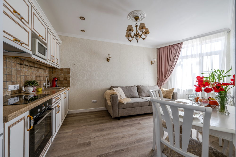 Также есть удобный большой диван для комфортного размещения 2 гостей в кухне гостинной.