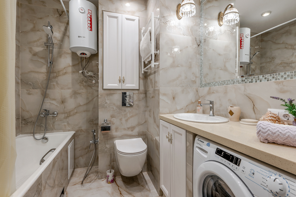 Апартаменты оснащены вместительной зоной хранения, стиральной машиной, феном. Гладильная доска и утюг также находятся в апартаментах.Чистое постельное белье, комплект полотенец на каждого гостя ,туалетные принадлежности.