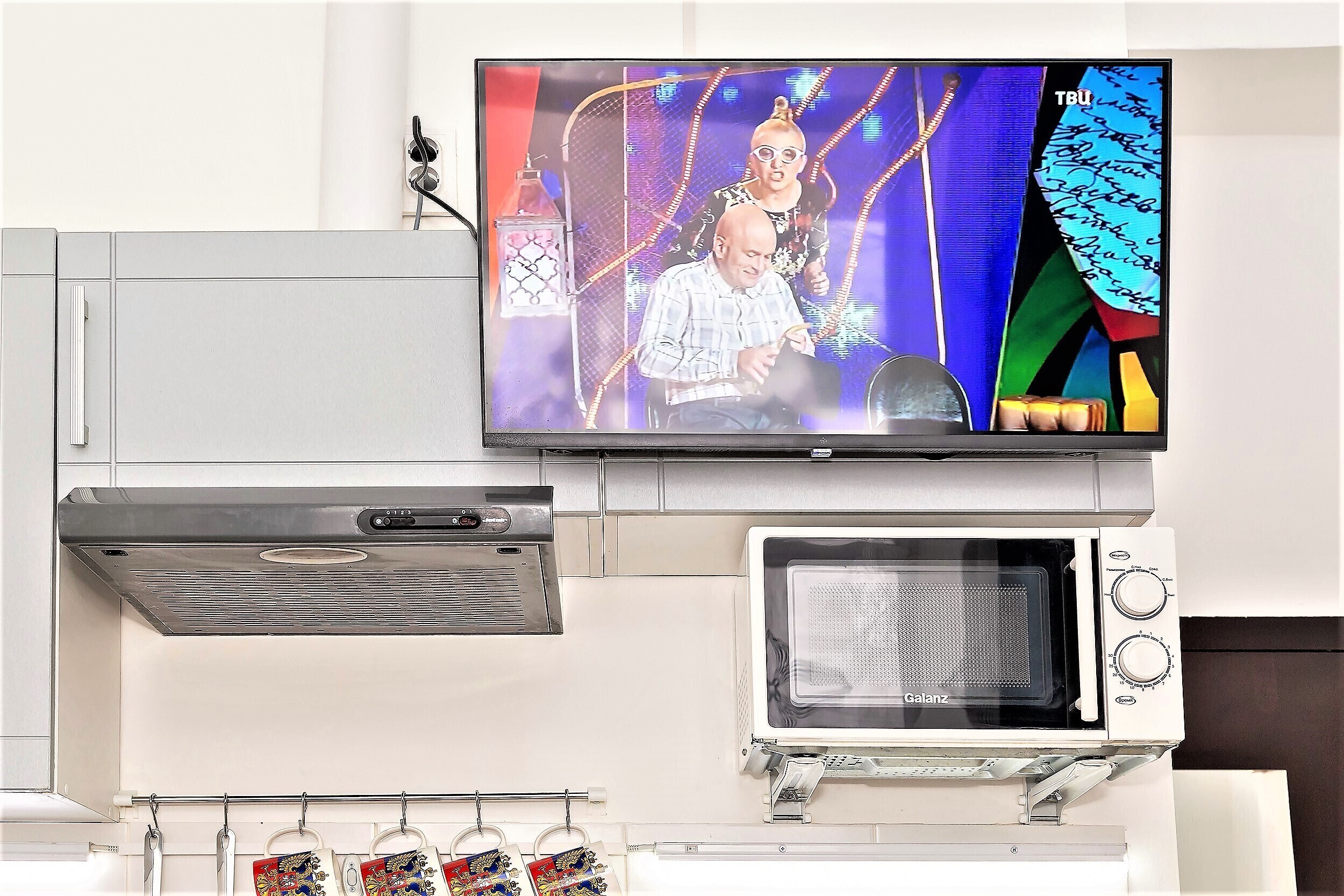 Для комфортного проживания в квартире имеется все необходимое: двухспальный диван, телевизор, Wi-Fi, кабельное телевидение, стиральная машина автомат, холодильник, плита, свч, фен, утюг, гладильная доска, постельное белье.