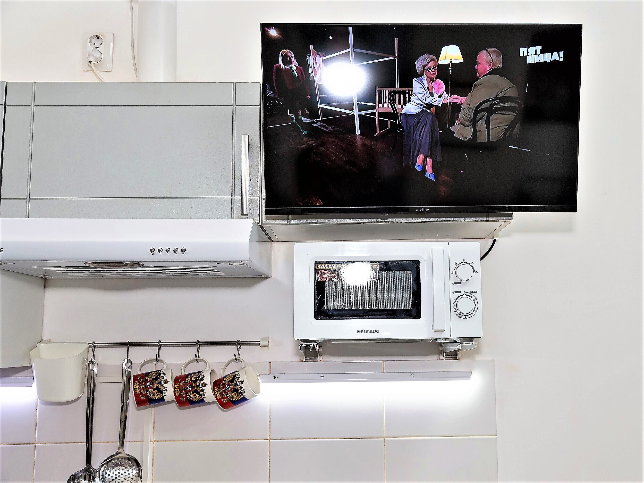 Для комфортного проживания в квартире имеется все необходимое: двухспальный диван, телевизор, Wi-Fi, кабельное телевидение, стиральная машина автомат, холодильник, плита, свч, фен, утюг, гладильная доска, постельное белье.