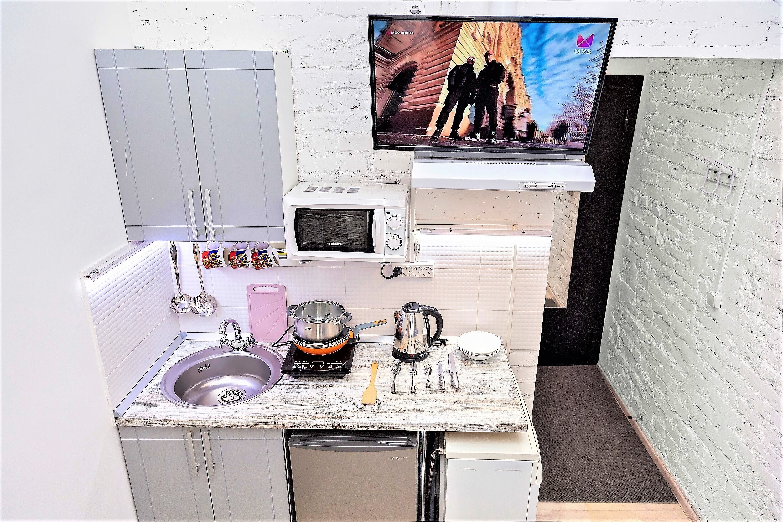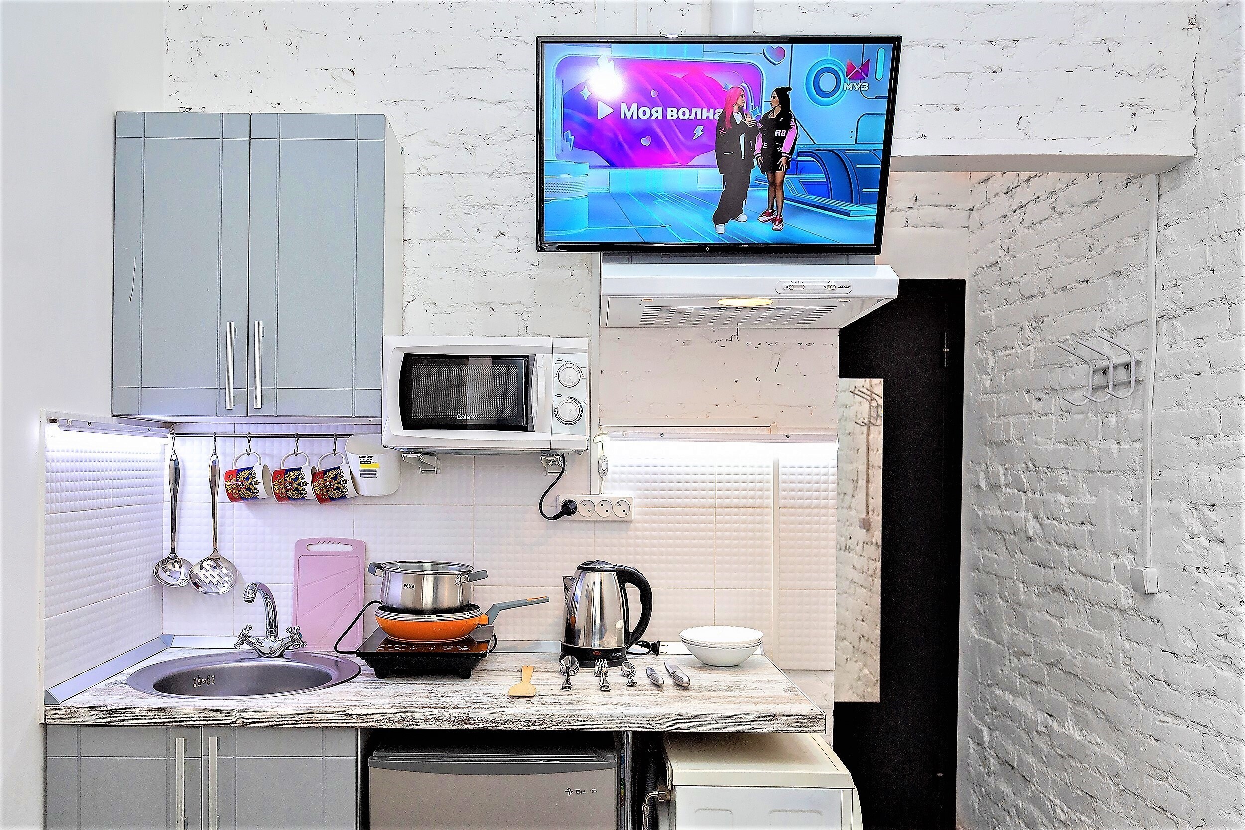 Для комфортного проживания в квартире имеется все необходимое: двухспальный диван, телевизор, Wi-Fi, кабельное телевидение, стиральная машина автомат, холодильник, плита, свч, фен, утюг, гладильная доска, постельное белье.