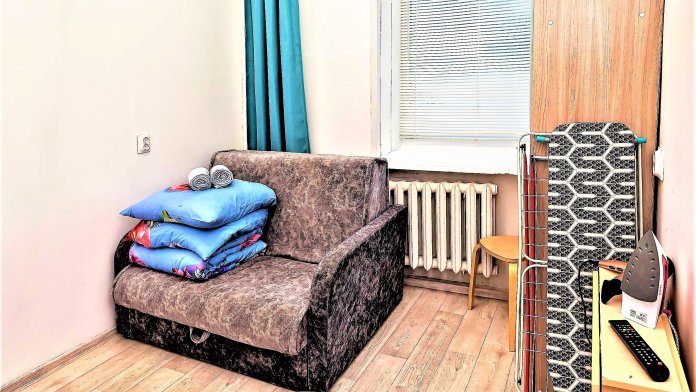 Для комфортного проживания в квартире имеется все необходимое: двухспальный диван, телевизор, Wi-Fi, кабельное телевидение, стиральная машина автомат, холодильник, плита, свч, фен, утюг, гладильная доска, постельное белье.