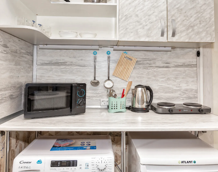 Для комфортного проживания в квартире имеется все необходимое: двухспальный диван, телевизор, Wi-Fi, кабельное телевидение, стиральная машина автомат, холодильник, плита, свч, фен, утюг, гладильная доска, постельное белье.