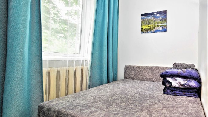 Для комфортного проживания в квартире имеется все необходимое: двухспальный диван, телевизор, Wi-Fi, кабельное телевидение, стиральная машина автомат, холодильник, плита, свч, фен, утюг, гладильная доска, постельное белье.