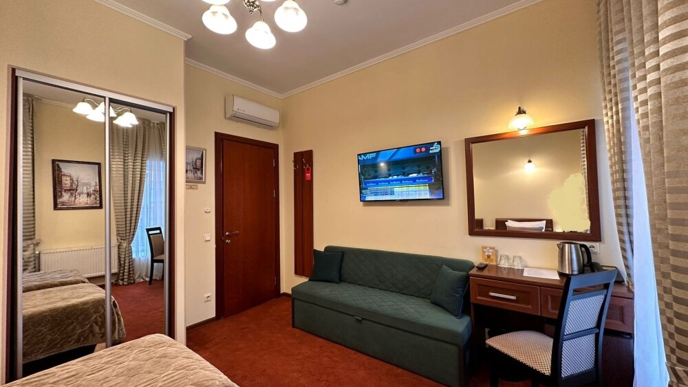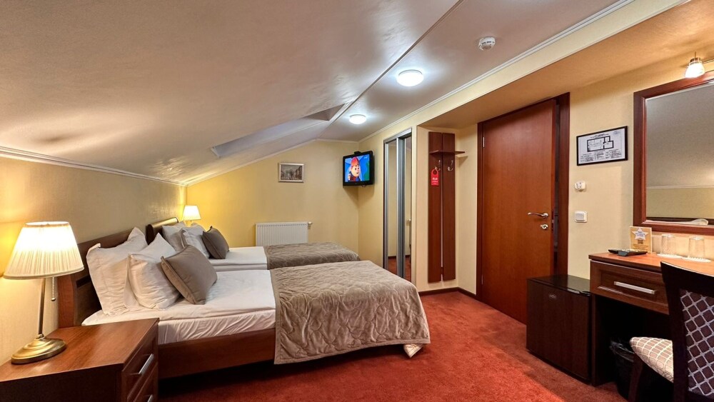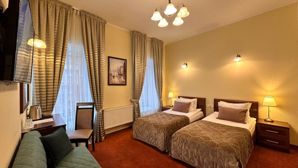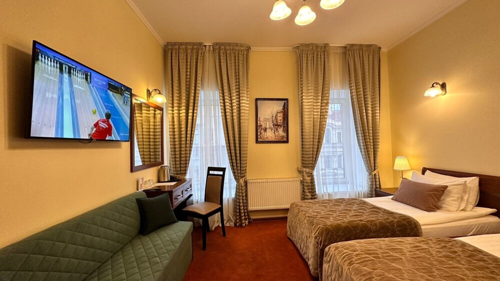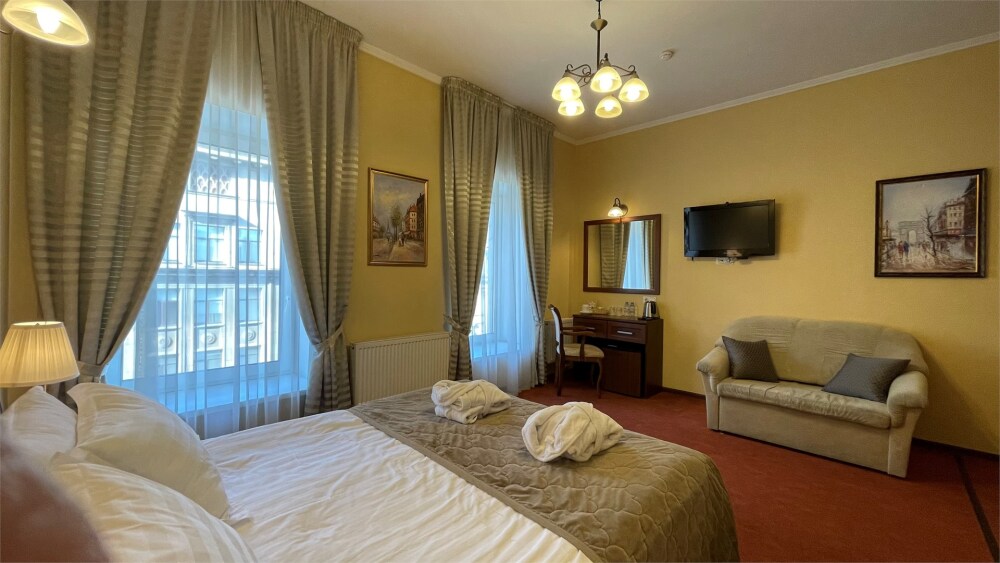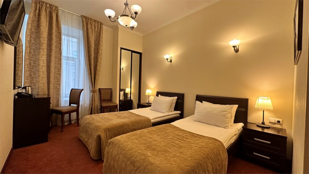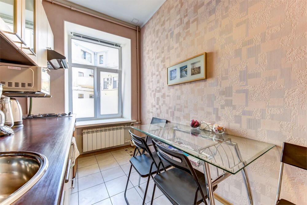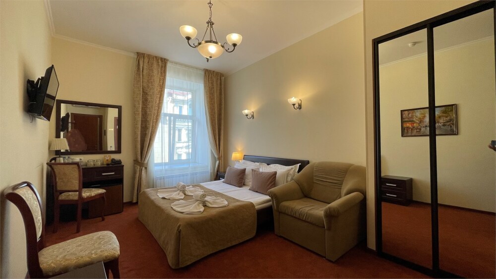 Уютная и тихая атмосфера - истинная находка как для романтических пар, так для туристов и деловых людей. Две комнаты расположены на мансарде, к которым ведет дубовая лестница, и являются идеальными для отдыха в центре, но в полнейшей тишине. Часть комнат выходят окнами в тихий, красивый двор, а часть - имеют вид на Невский проспект, мерцающие огни и движение которого завораживают, позволяют ощутить себя в центре одного из красивейших городов мира.