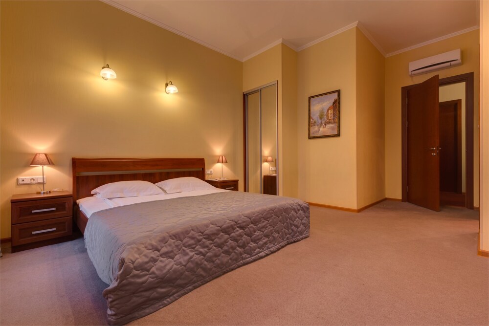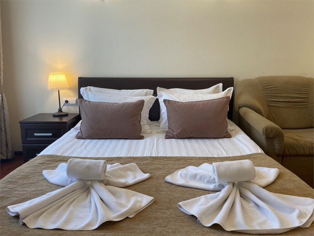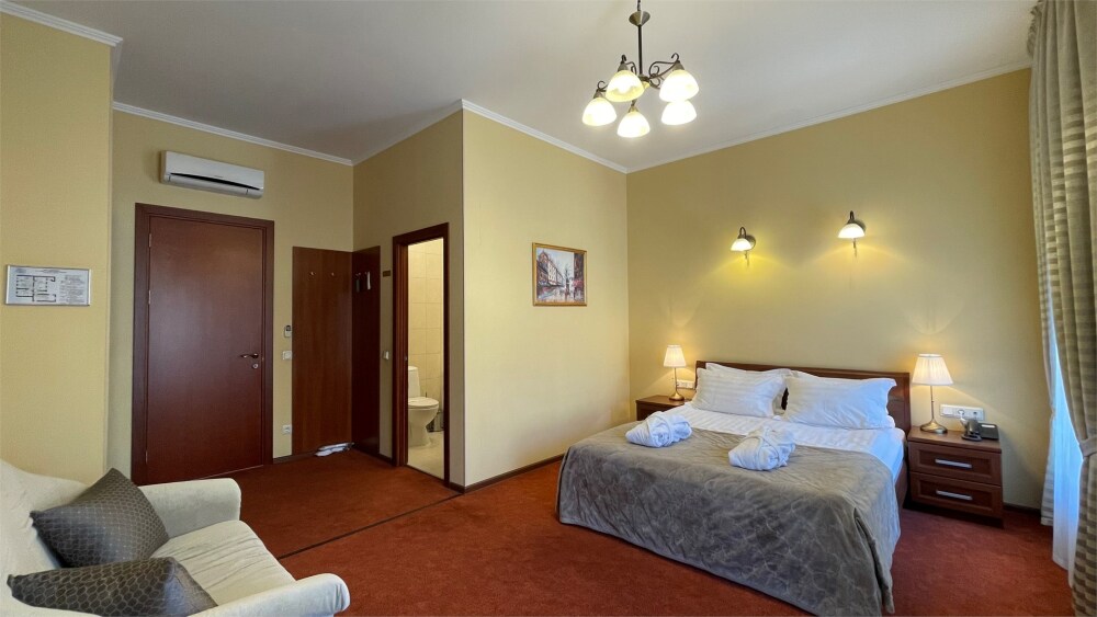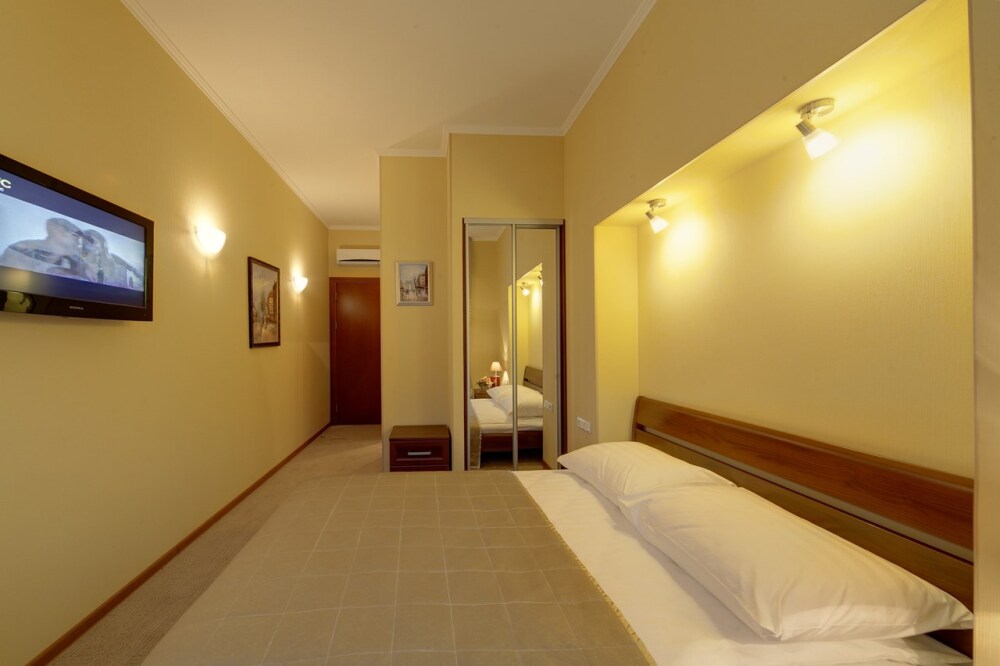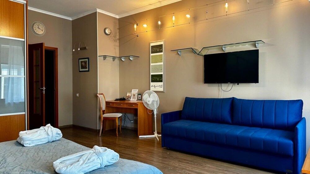 К Вашим услугам двуспальная кровать, Smart ТВ, ванная с гидромассажем.