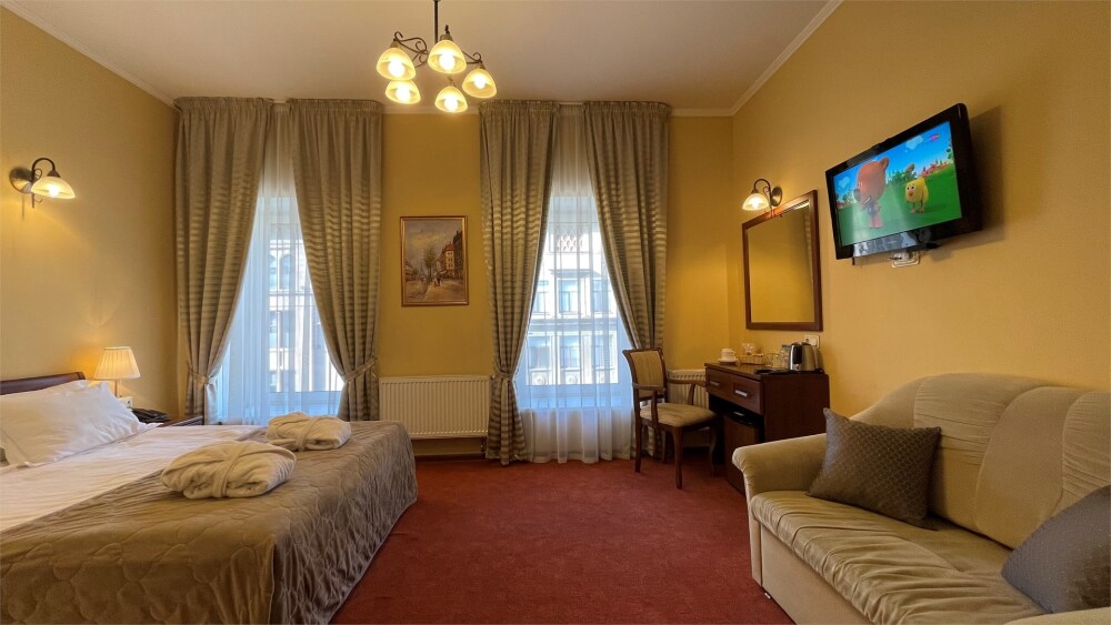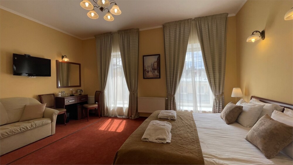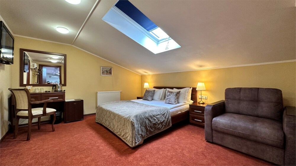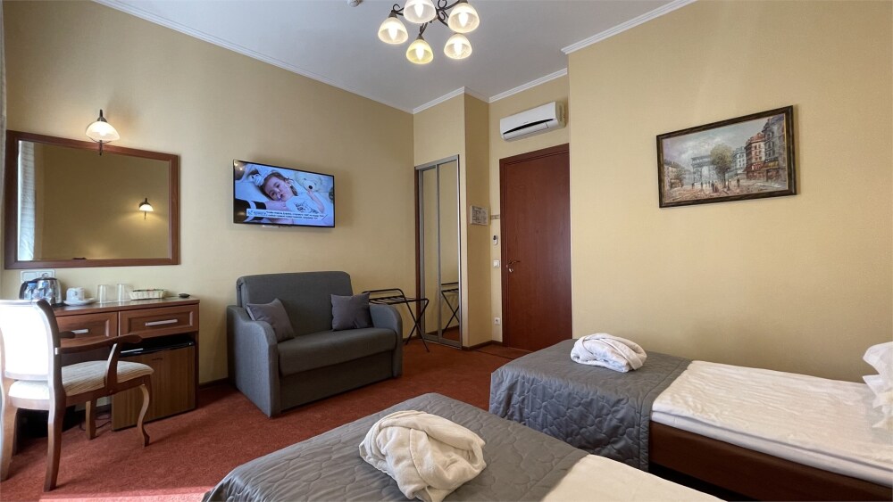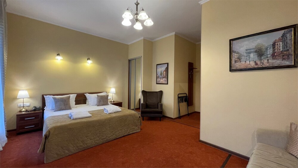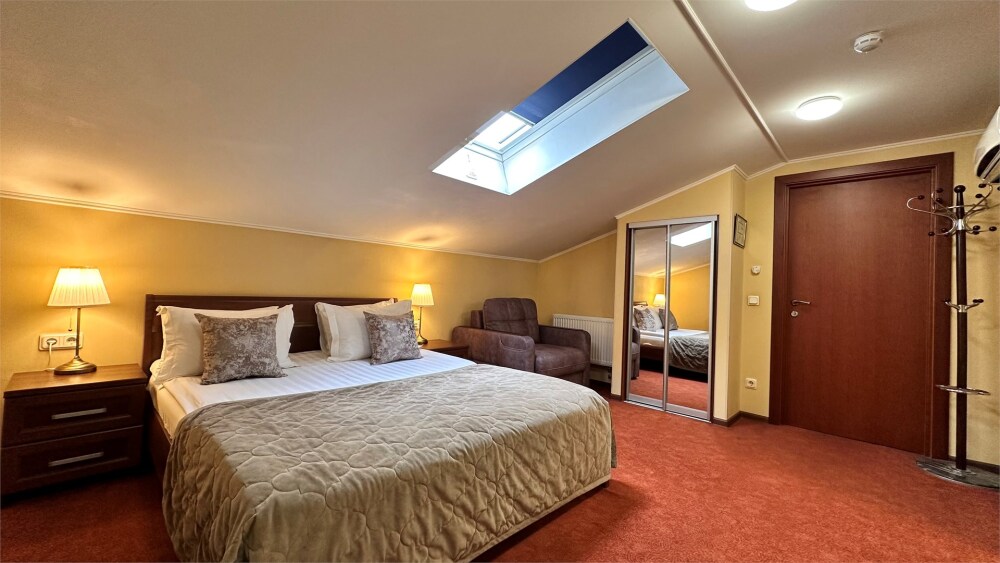 К Вашим услугам двуспальная кровать, Smart ТВ, ванная с гидромассажем.