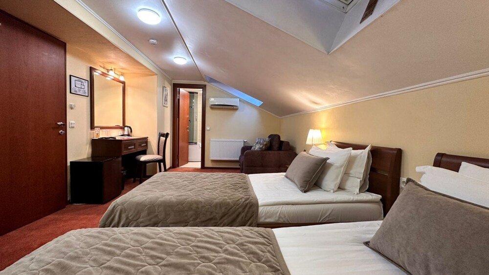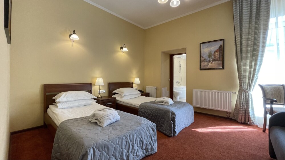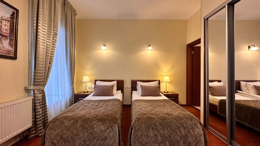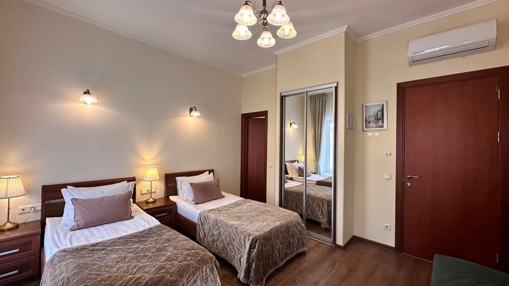 На выбор: кровать Queen size или 2 односпальные кровати.