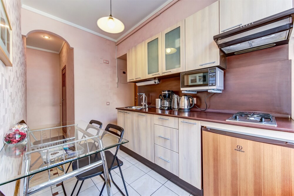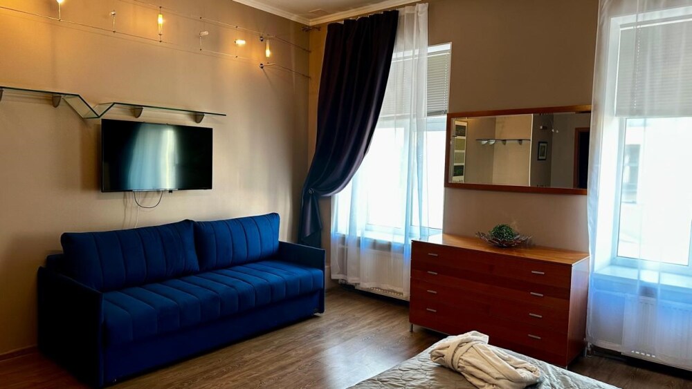 К Вашим услугам уютная кухня со встроенной техникой и всем необходимым для приготовления полноценного завтрака/обеда/ужина, санузел, оснащенный душевой кабиной с подогревом пола, и полным набором гостиничной парфюмерии. Просторная комната-спальня с двуспальной кроватью и раскладным креслом. Smart ТВ. По желанию постояльцев в апартаментах осуществляется уборка, совершенно бесплатно.