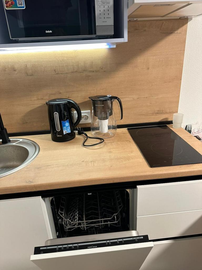 В квартире есть всё необходимое для проживания: Wi-Fi, кровать 160 на 200, ортопедический матрас, телевизор Smart, подписка wink, постельное белье, набор полотенец, шампуни, гели для душа (премиум класса), одноразовые щетки и зубная паста, шторы Блэк аут, плита, микроволновка, холодильник, вся необходимая посуда, утюг, гладильная доска, фен, халаты.