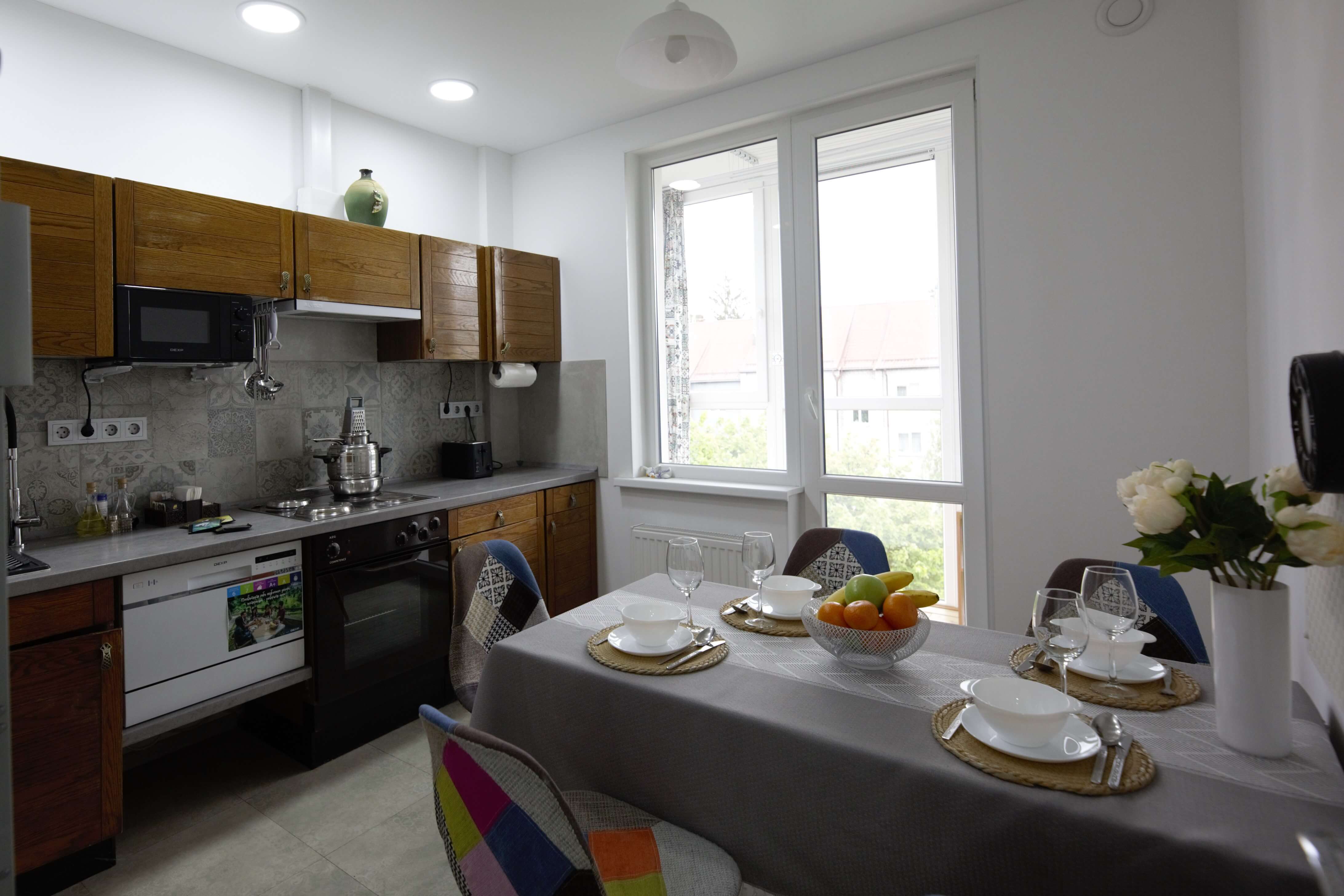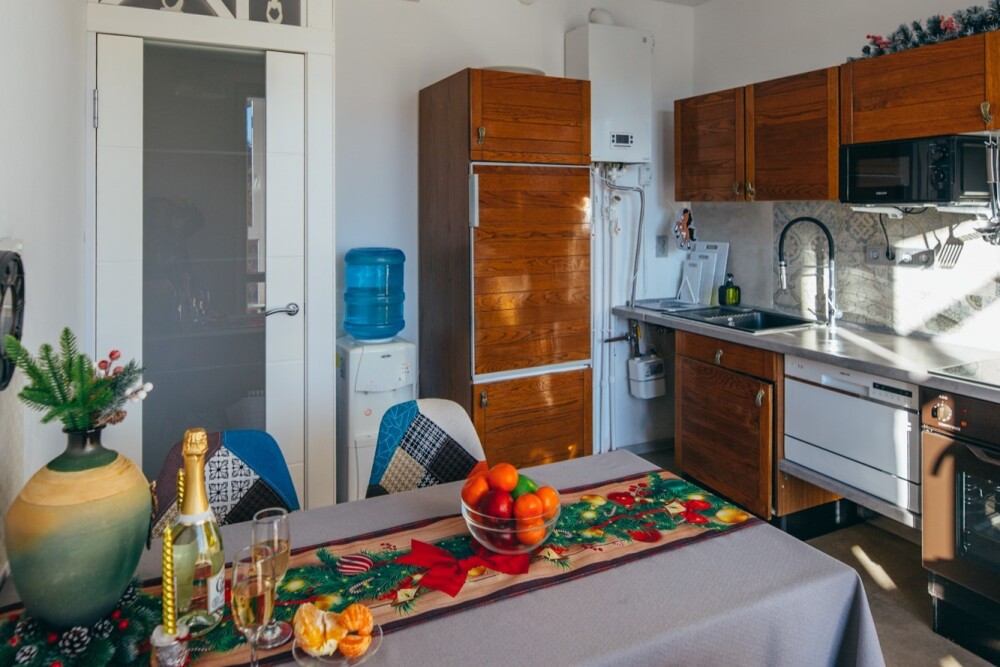 Кухня с полным набором посуды и бытовой техники, чтобы легко готовить для всей семьи.