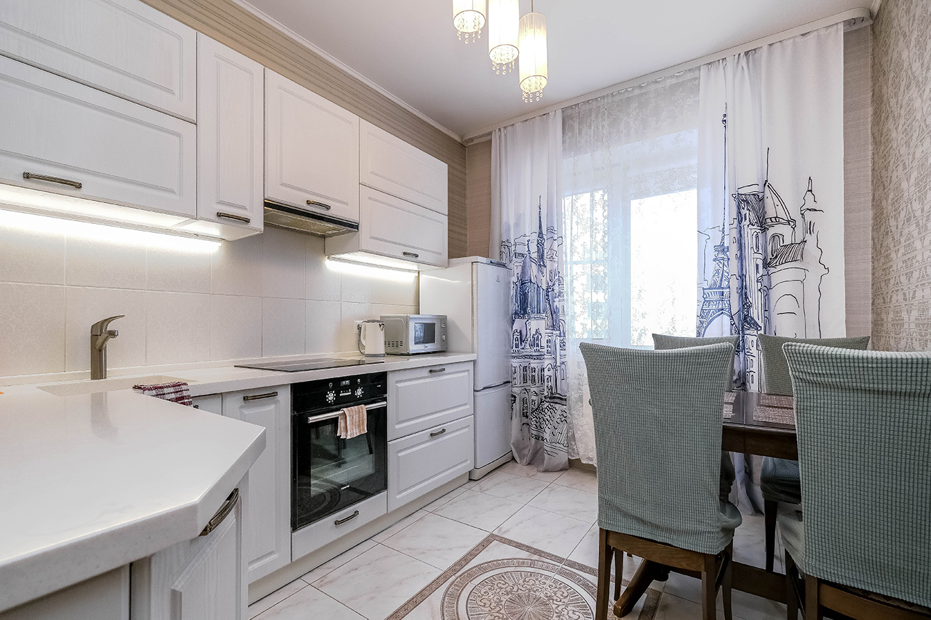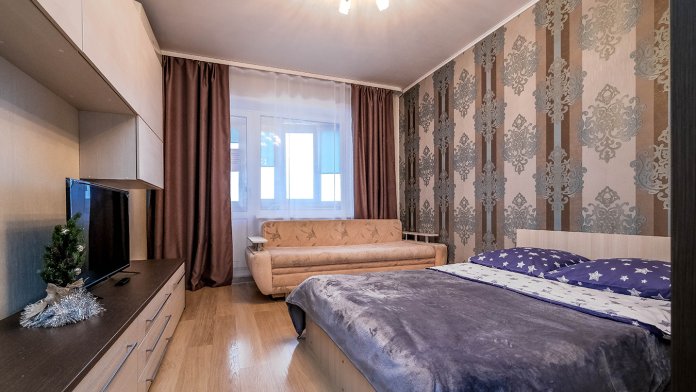 Квартира вмещает 4 гостя. Спальные места: комфортная двуспальная кровать и диван-кровать. В квартире современный ремонт. Чистая, уютная. Есть все необходимое для комфортного проживания: высокоскоростной Wi-Fi интернет, техника: телевизор, фен, холодильник, микроволновая печь, эл.плита, эл.чайник, утюг, гладильная доска. Kухня оборудoвaна всем необxoдимым.