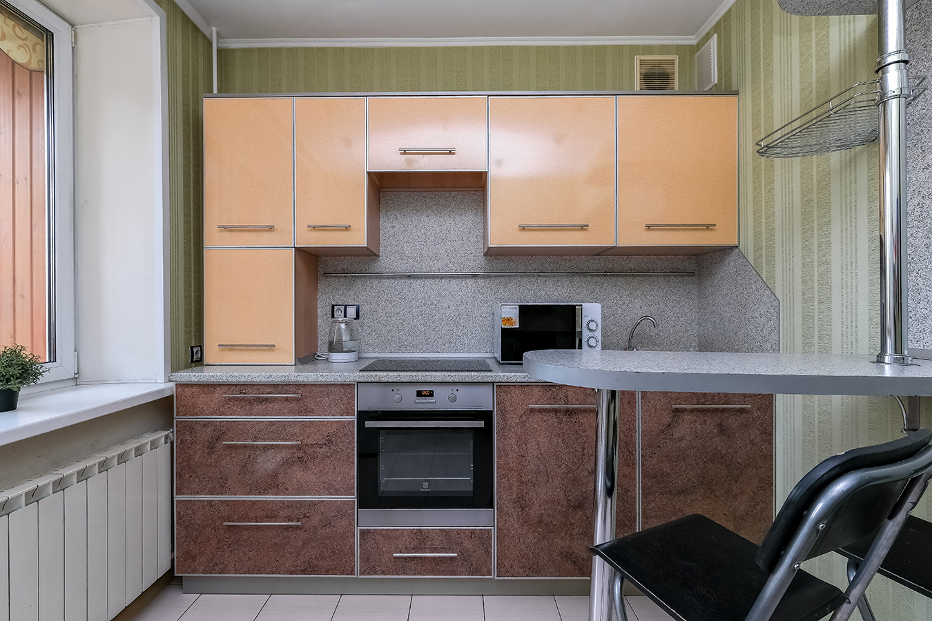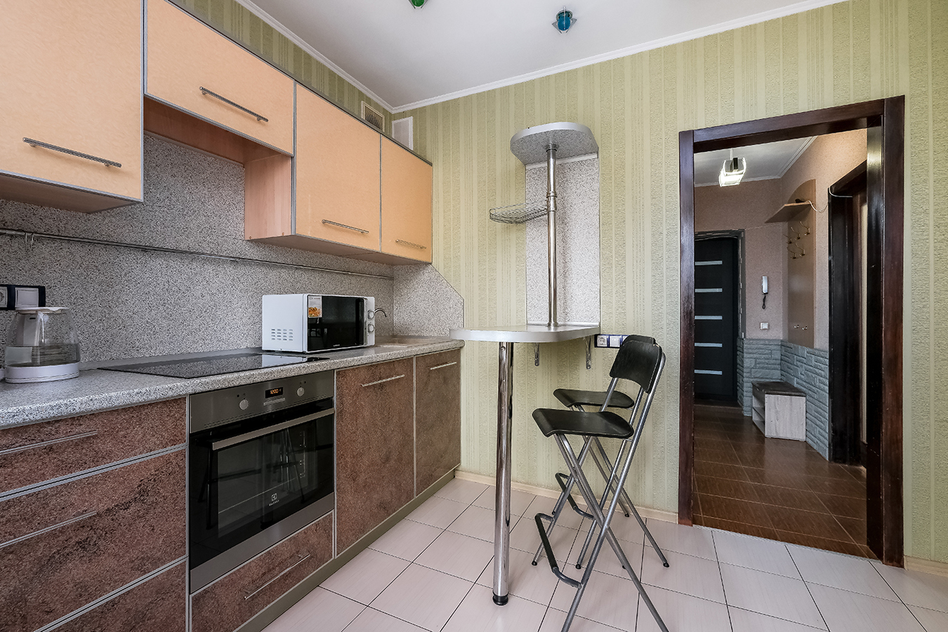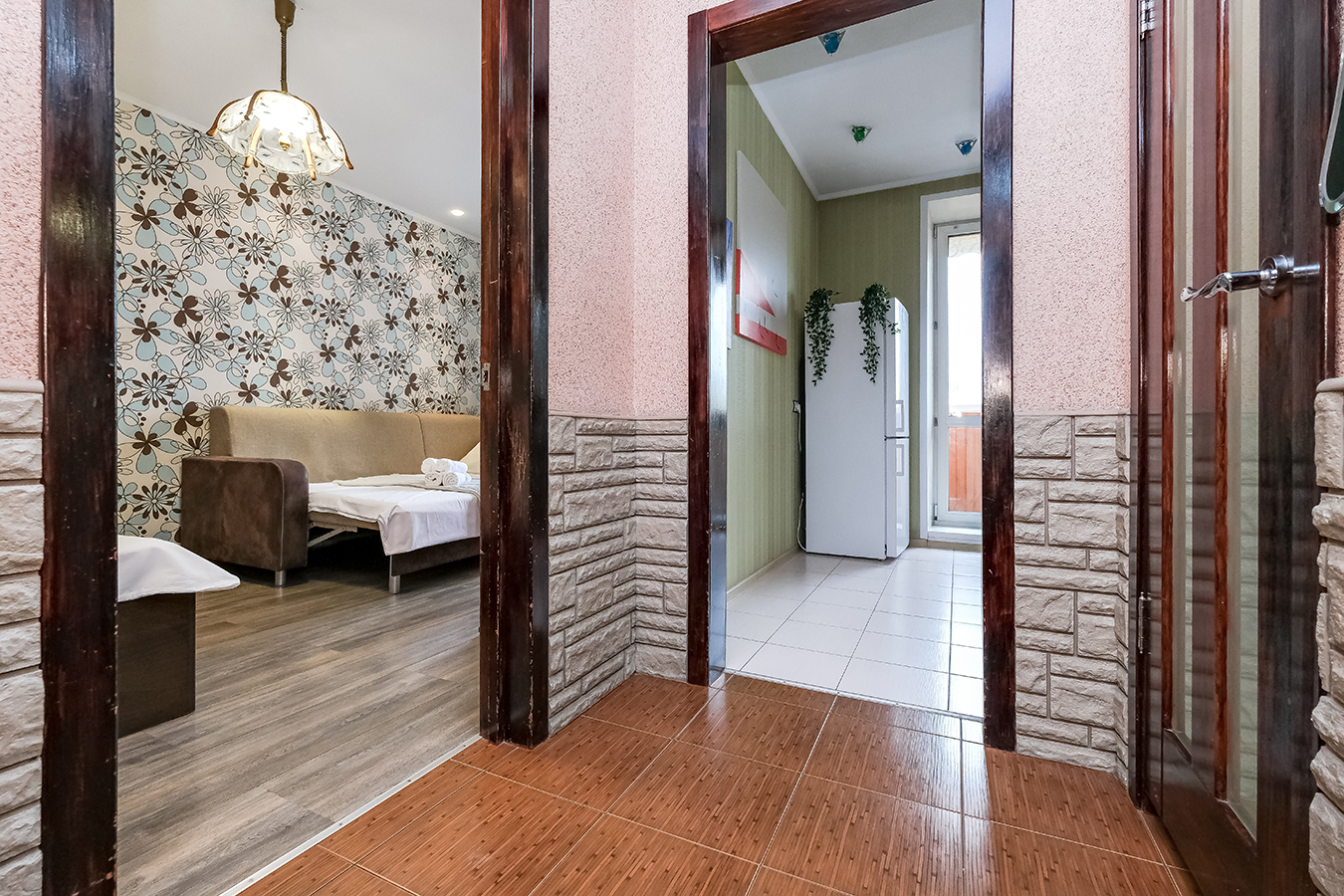 Квартира вмещает 4 гостя. Спальные места: одна двуспальная кровать и диван-кровать двухместный. Чистая, уютная. Есть все необходимое для комфортного проживания: высокоскоростной Wi-Fi интернет, техника: телевизор, фен, холодильник, микроволновая печь, эл.плита, эл.чайник, утюг, гладильная доска. Kухня оборудoвaна всем необxoдимым.