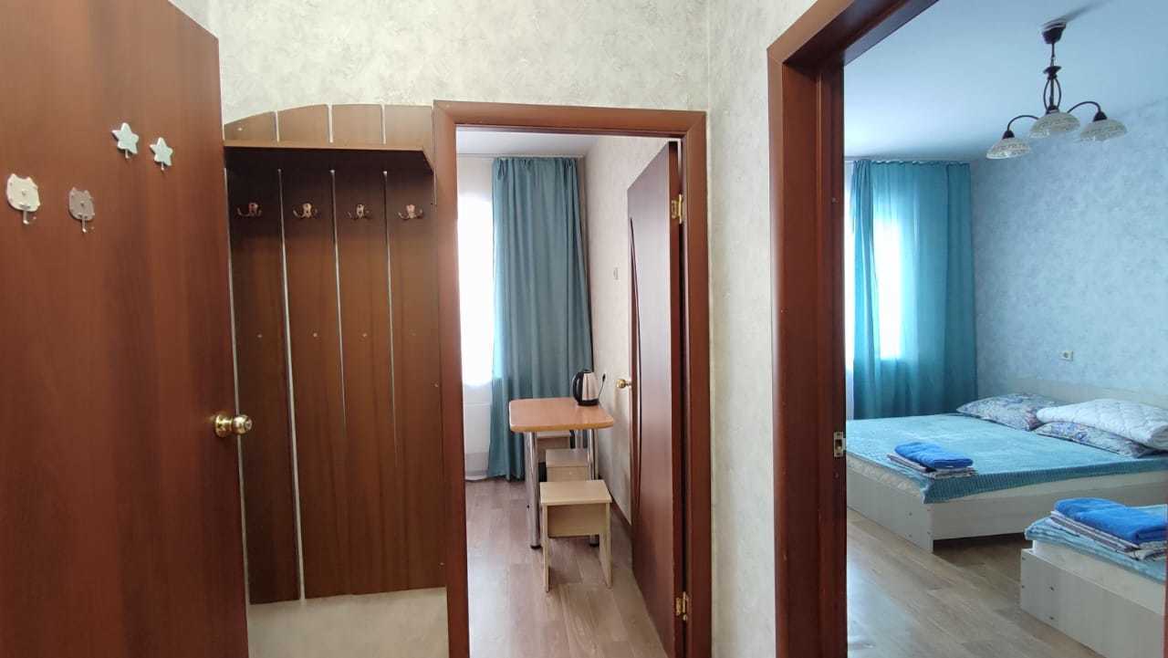 Квартира вмещает 4 гостя. Спальные места: две двуспальные кровати. В квартире есть все необходимое для комфортного проживания: высокоскоростной Wi-Fi интернет, техника: телевизор, фен, холодильник, микроволновая печь, эл.плита, эл.чайник, утюг, гладильная доска. Kухня оборудoвaна всем необxoдимым.