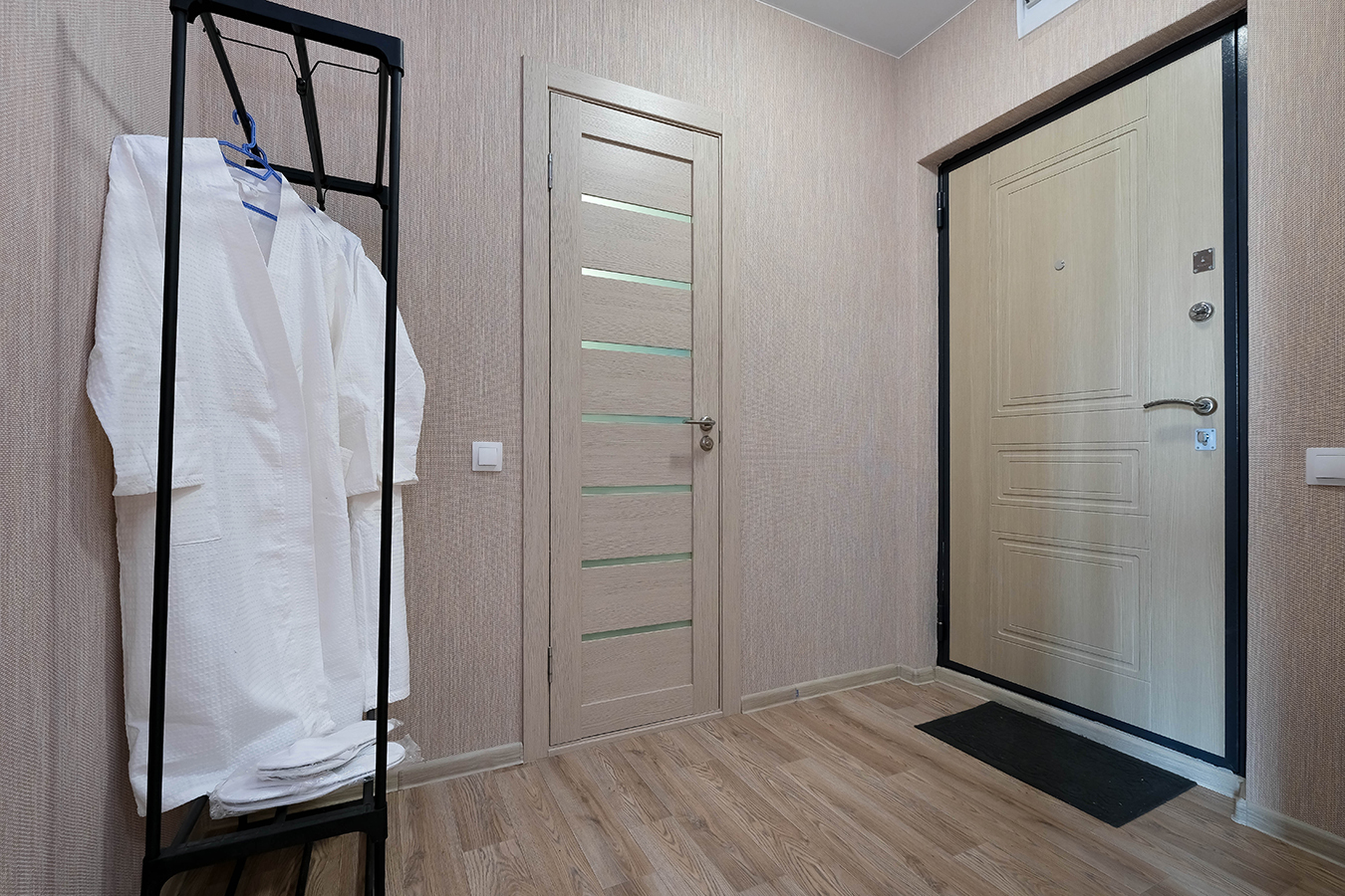 Квартира вмещает 2 гостя. Спальные места: двуспальная кровать. В квартире современный ремонт. Чистая, уютная. Есть все необходимое для комфортного проживания: высокоскоростной Wi-Fi интернет, техника: телевизор, фен, холодильник, микроволновая печь, эл.плита, эл.чайник, утюг, гладильная доска. Kухня оборудoвaна всем необxoдимым.