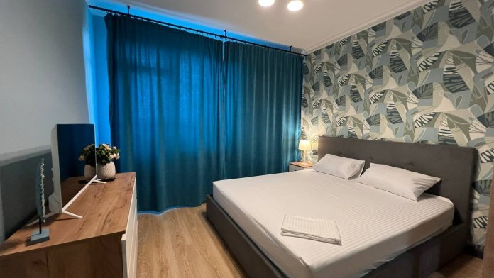 В квартире есть все необходимое: двухспальная кровать, диван, кухонный гарнитур, плита, микроволновка, чайник, стиральная машина, телевизор, шкаф, обеденная зона, гладильные принадлежности, Wi-Fi. Предоставляются туалетно-косметические принадлежности.