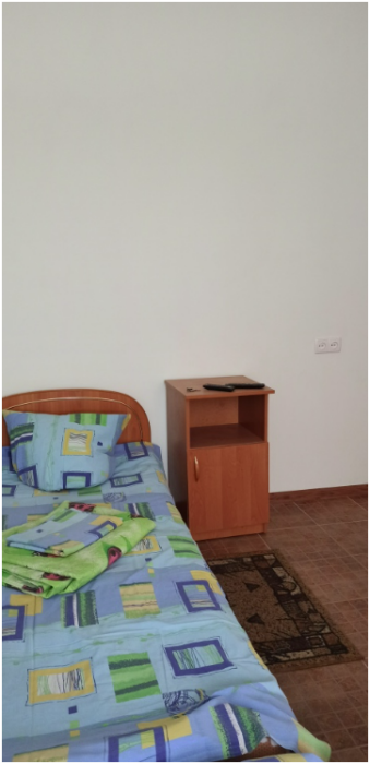 Домовладение состоит из 4 номеров - 2 трёхместные и 2 двухместные. Трёхместные номера имеют отдельные душевую и санузел, двухместные имеют туалет и душ общие на 2 номера. В номерах кровати, шкафы, тумбочки, настенные телевизоры, кондиционеры сменное постельное. Имеется большая открытая кухня-столовая со всем необходимым для приготовления и приема пищи. Wi-fi, цифровое и интернет ТВ. Благоустроенный двор с автостоянкой.