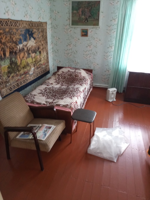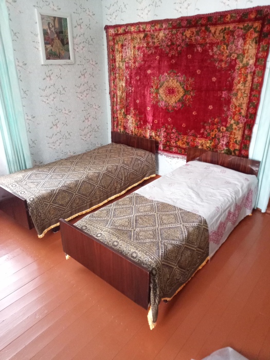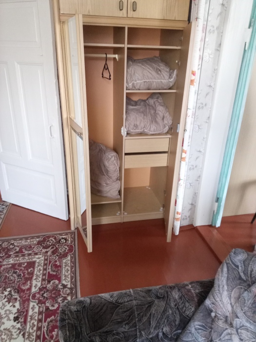 5 спальных мест: три кровати и раскладывающийся диван. Два больших шкафа, 2 кресла, стол, стулья, табуретки.