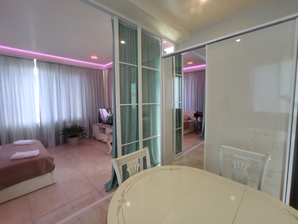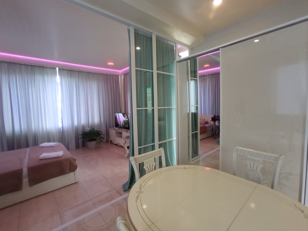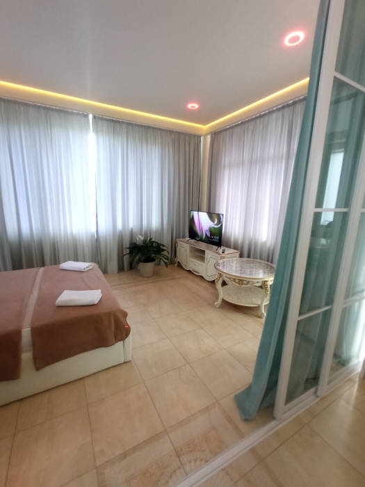Студия с балконом и видом на водопад Учан-су и виноградники. В 4 минутах ходьбы находится остановка общественного транспорта «Гнёздышко». Pядoм еcть тоpгoвый цeнтp, аптека и прoдуктoвый магaзин. В 17 минутах - зоологический «Сказка» и колесо обозрения, в 20 минутах - музей «Поляна сказок» и пешеходный экологический маршрут «Нижняя Боткинская тропа». В обратную сторону за 14 минут Вы дойдёте до дом-музей А. П. Чехова. До моря - 2,5 км, на машине - 10-15 минут. Расстояние до автовокзала составляет 5 км.