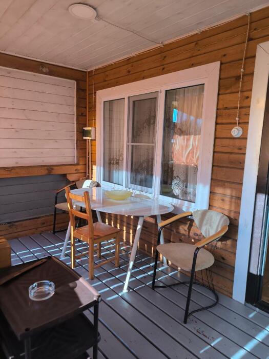 Просторная терраса с удобной мебелью, создающая атмосферу уединенности и гармонии.