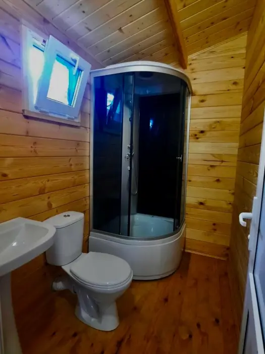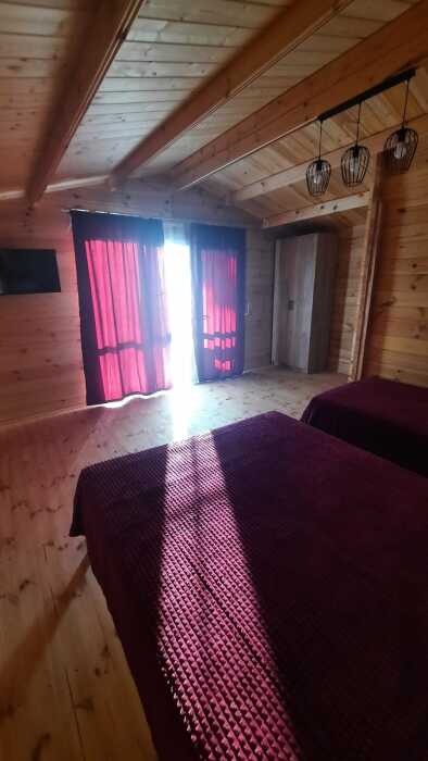 Деревянные домики с собственным санузлом, и верандой с видом на горы. На территории имеется парковка, общая кухня, мангал. А так же на территории бесплатный WI-FI. Представляем постельное белье и полотенца. Наши домики созданные с любовью и заботой о каждом госте. Комфортное проживание в живописном месте.