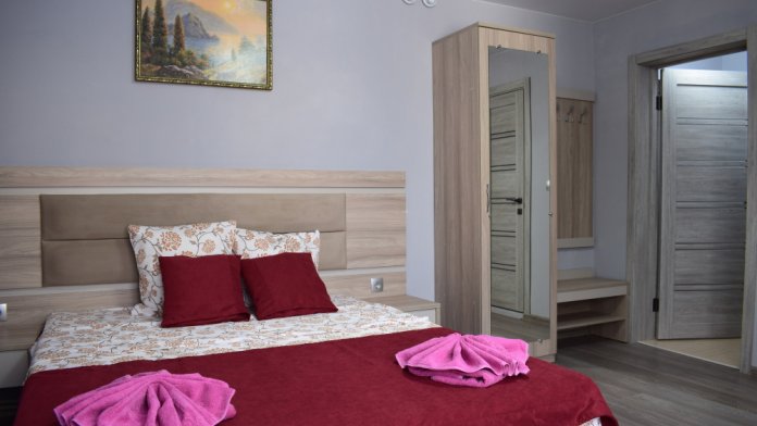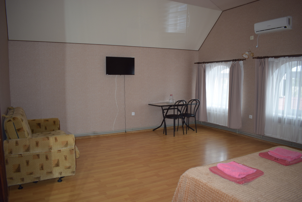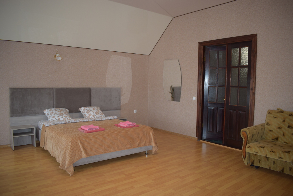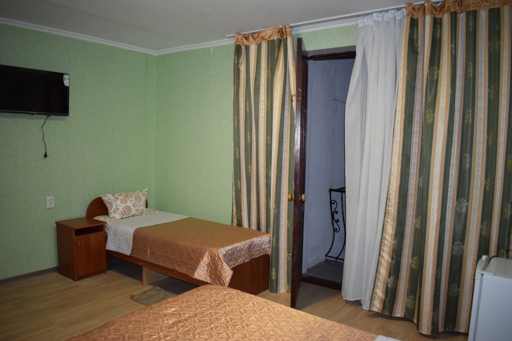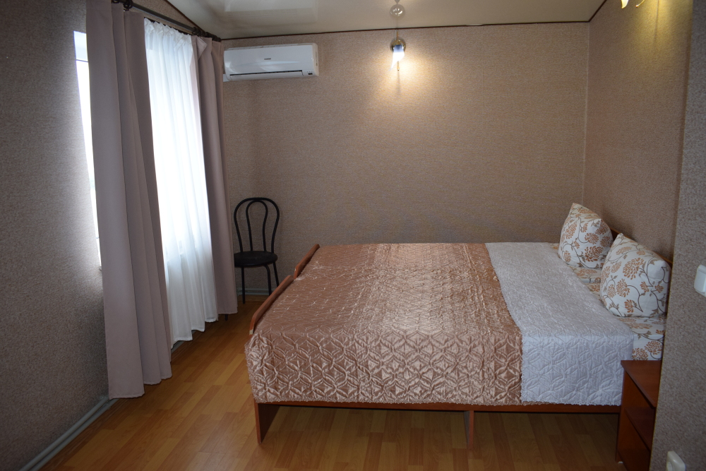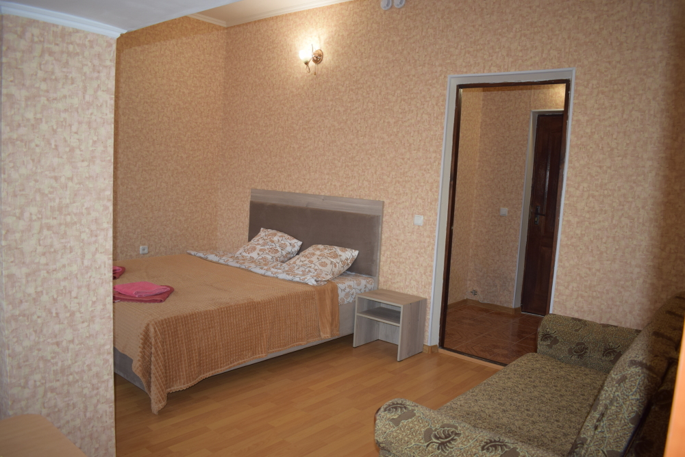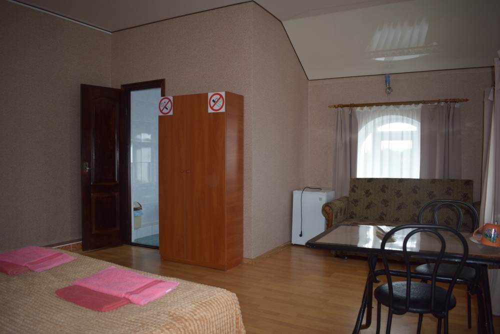 Уже 10 лет хозяева радушно принимают туристов со всех уголков страны. Для романтичных пар и отдыха с детьми найдутся комфортабельные однокомнатные двух-трехместные номера и двухкомнатные апартаменты на 4-5 человек. В каждом из них размещены балкон или лоджия, где вы сможете наслаждаться вечерней прохладой. Чистые пляжи с мягким дном всего в 100 метрах от здания свободны для посещения в любое время суток.