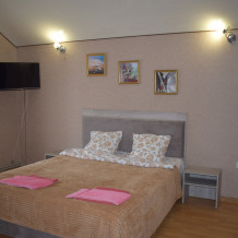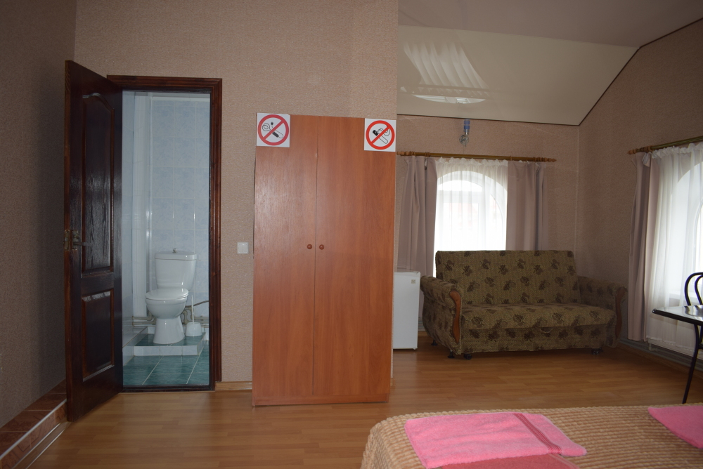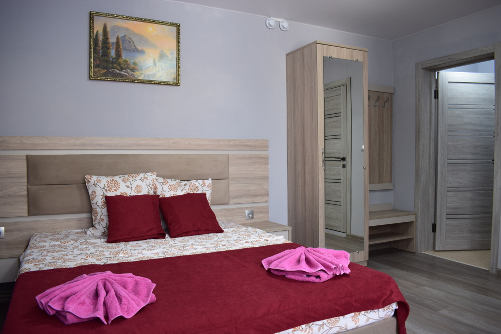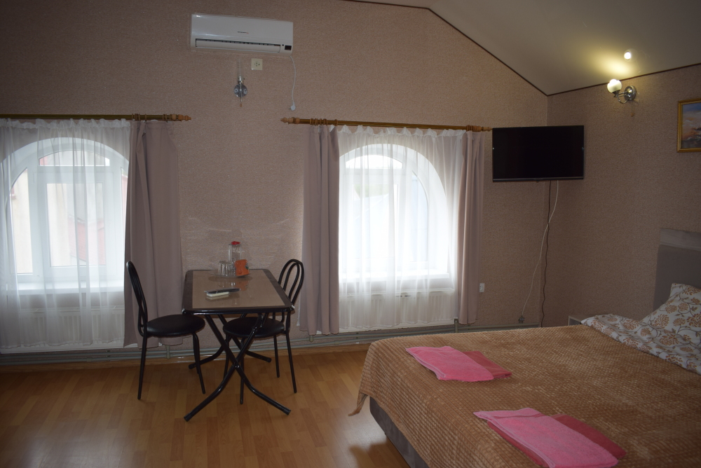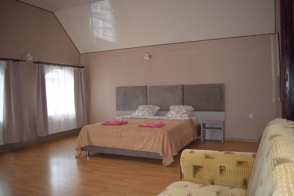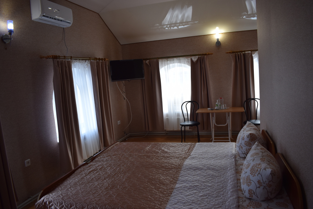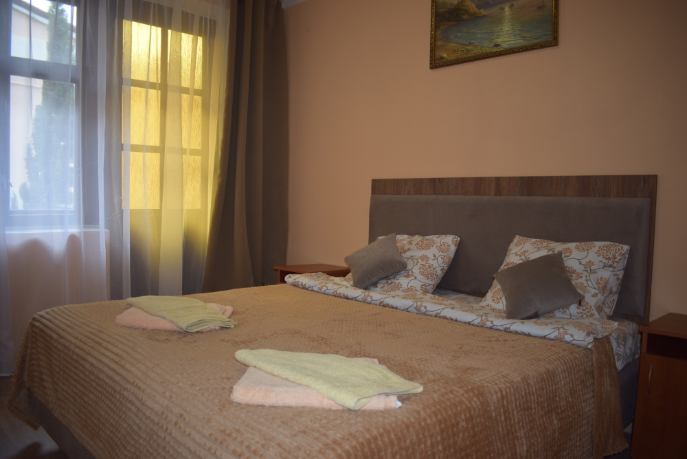 Уже 10 лет хозяева радушно принимают туристов со всех уголков страны. Для романтичных пар и отдыха с детьми найдутся комфортабельные однокомнатные двух-трехместные номера и двухкомнатные апартаменты на 4-5 человек. В каждом из них размещены балкон или лоджия, где вы сможете наслаждаться вечерней прохладой. Чистые пляжи с мягким дном всего в 100 метрах от здания свободны для посещения в любое время суток.