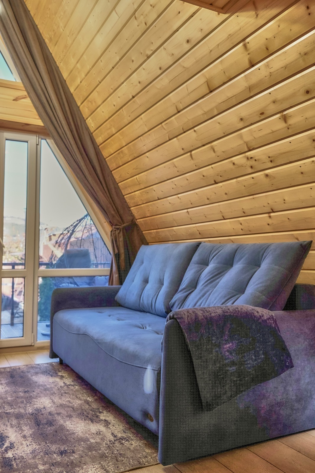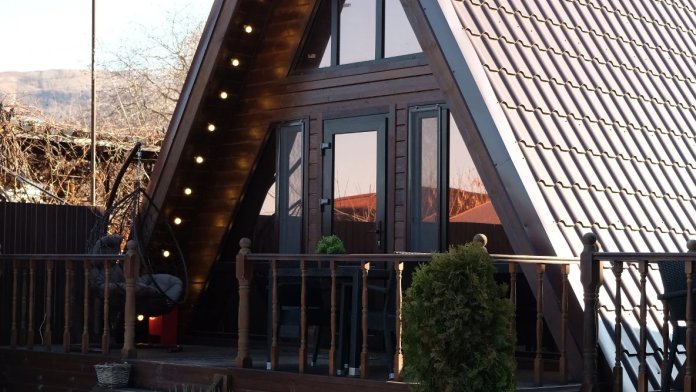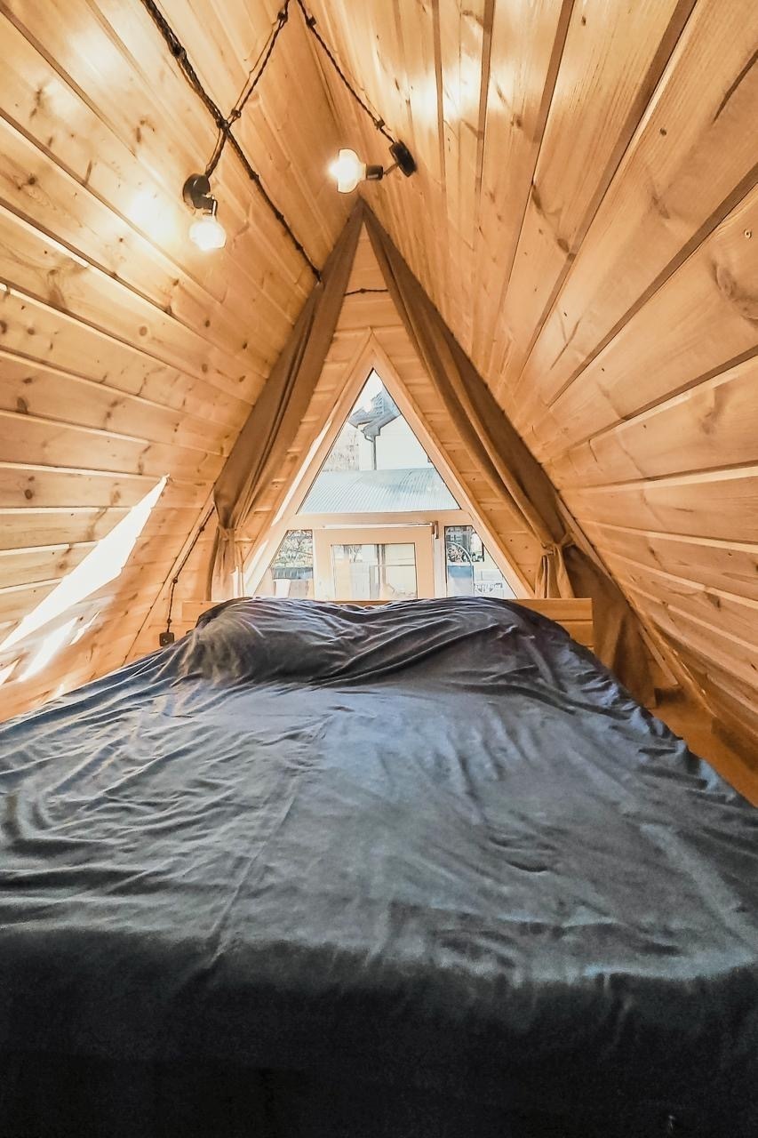 Домик А-фрейм рассчитан на 4 человека. В домиках есть кондиционер.