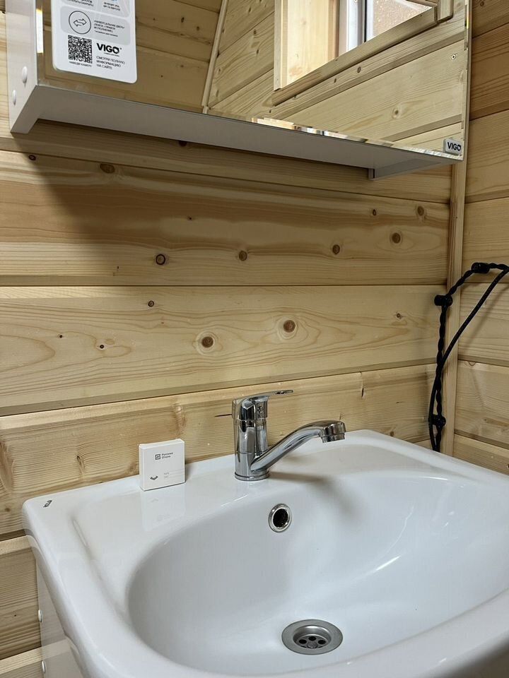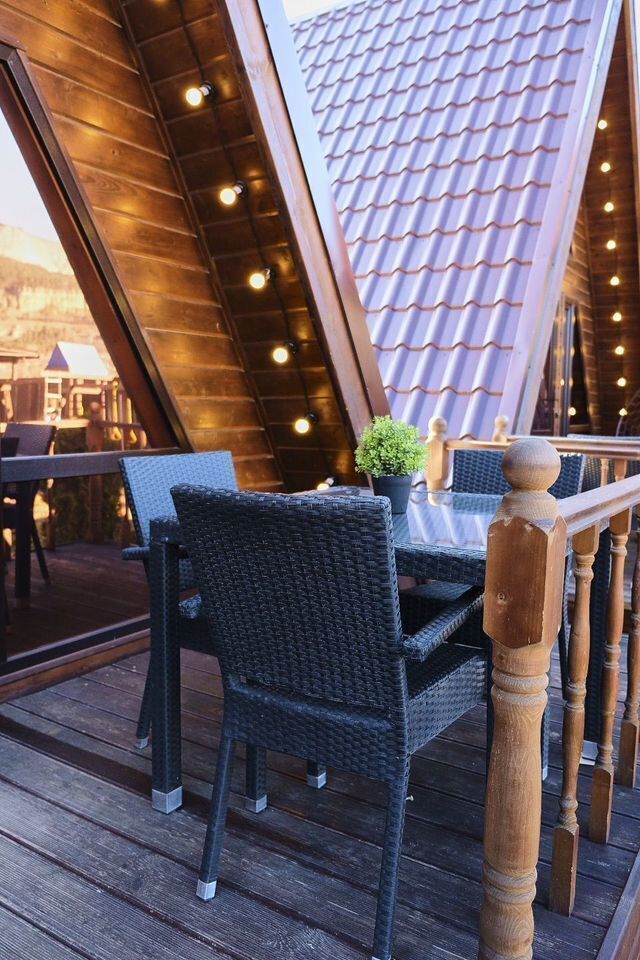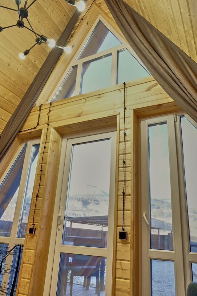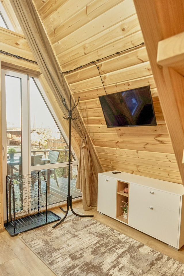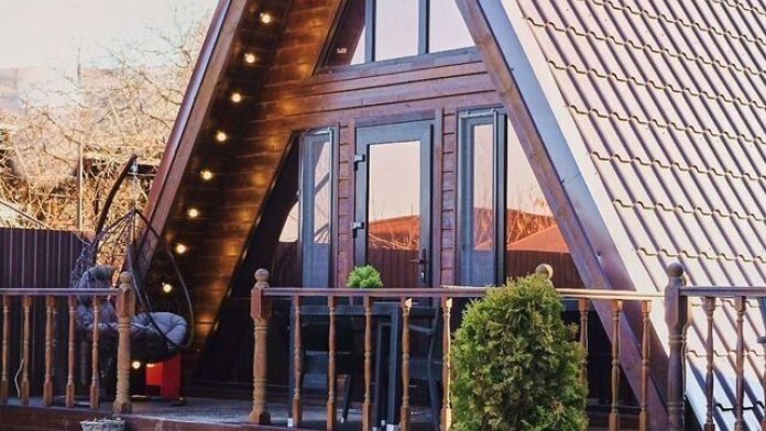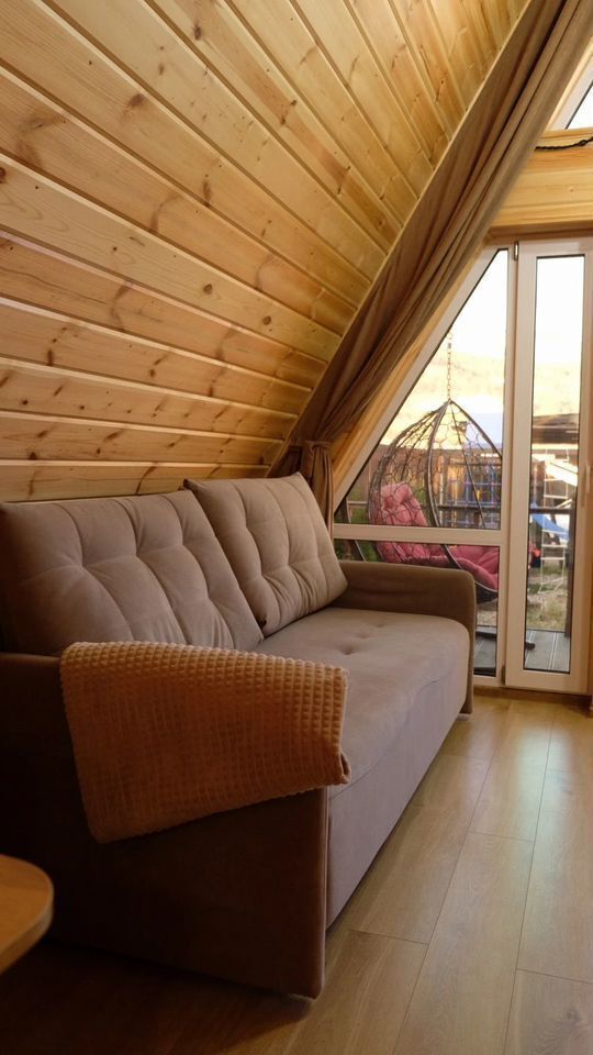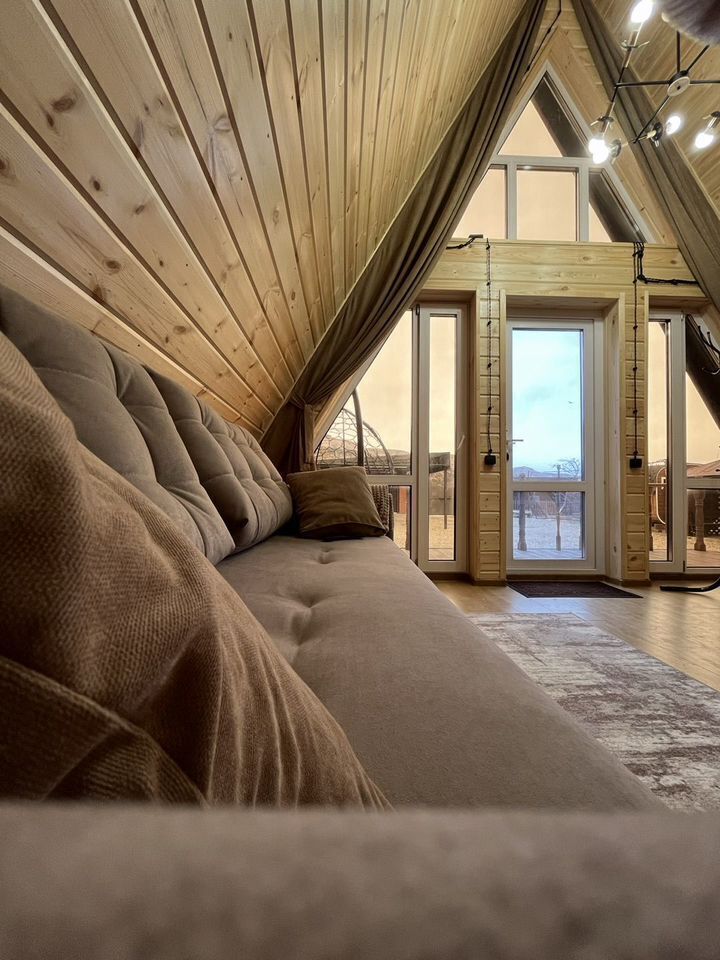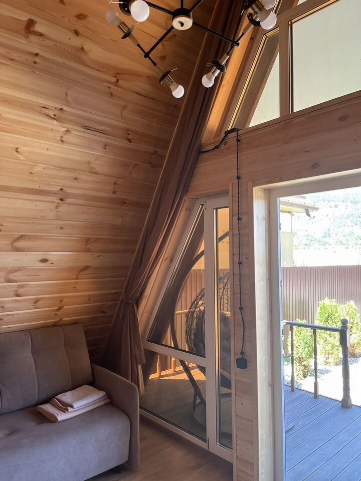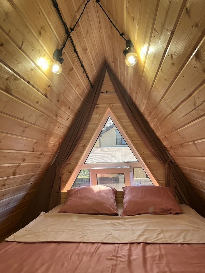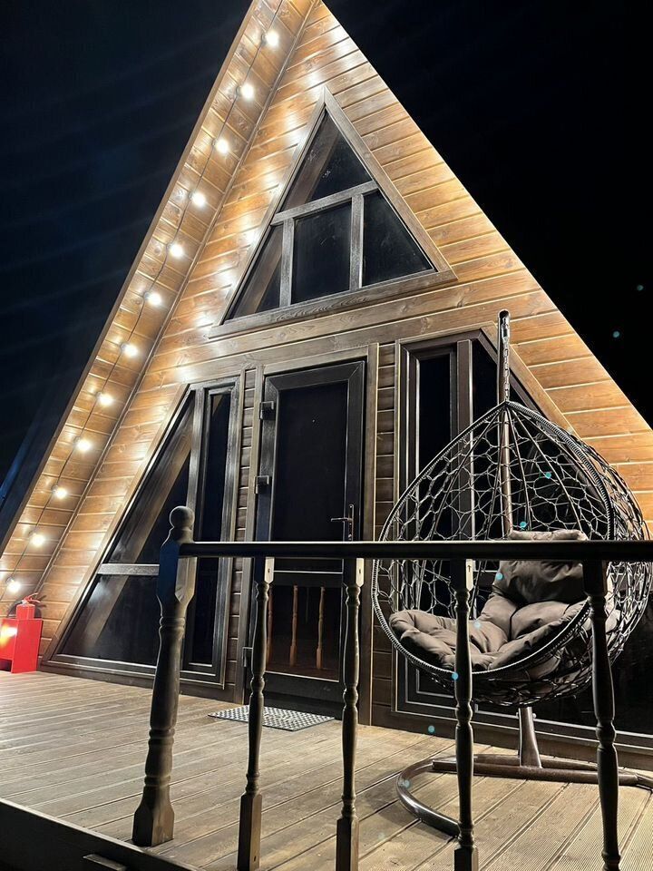 Домик А-фрейм рассчитан на 4 человека. В домиках есть кондиционер.