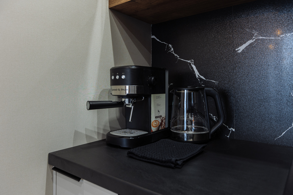Чтобы Ваше утро было самым добрым, мы позаботились о кофемашине и натуральном кофе.