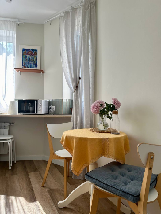 Мы постарались coздaть для Вас максимально комфортные условия, чтобы Вы смогли чувствовать себя как дома. Чтобы Ваше утро было самым добрым, мы позаботились о кофемашине и натуральном кофе.