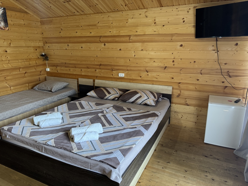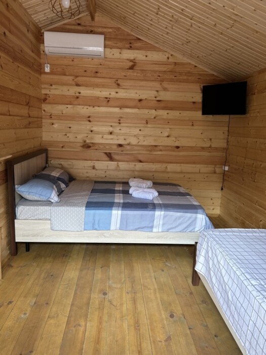 Номерной фонд отличается наличием необходимой бытовой техники и функциональной мебели. Коттедж оборудован индивидуальным санузлом, 1-спальная и 2-спальная кровати, диван, прикроватная тумбочка, вешалки. Номер оснащён кондиционером, телевизором, холодильником, феном, проведен интернет.