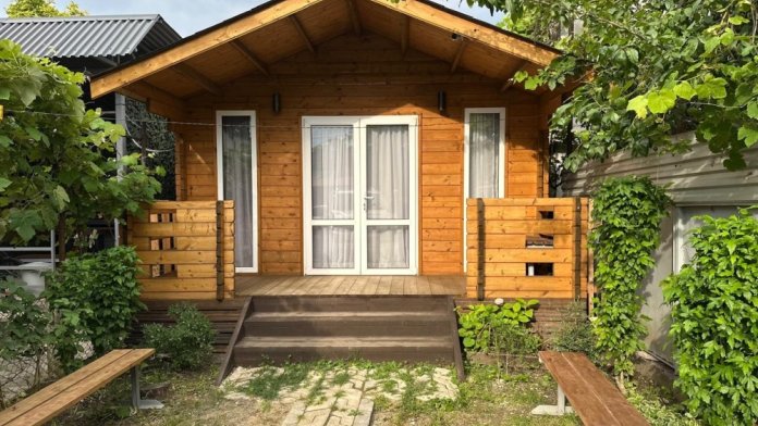 Коттеджный эко-домик расположен в городе Сухум, в центральной части города. Рядом расположен центральный рынок и Республиканский стадион. До моря 5 минут ходьбы. Чистый пляж, рядом теннисные корты. Все в шаговой доступности.