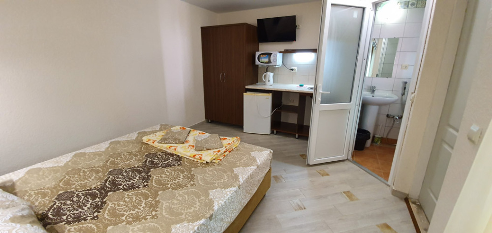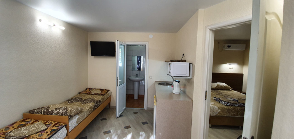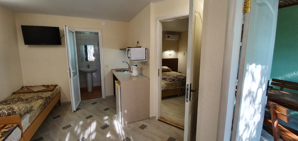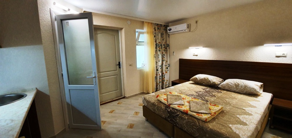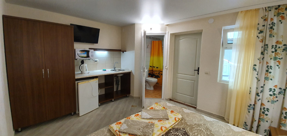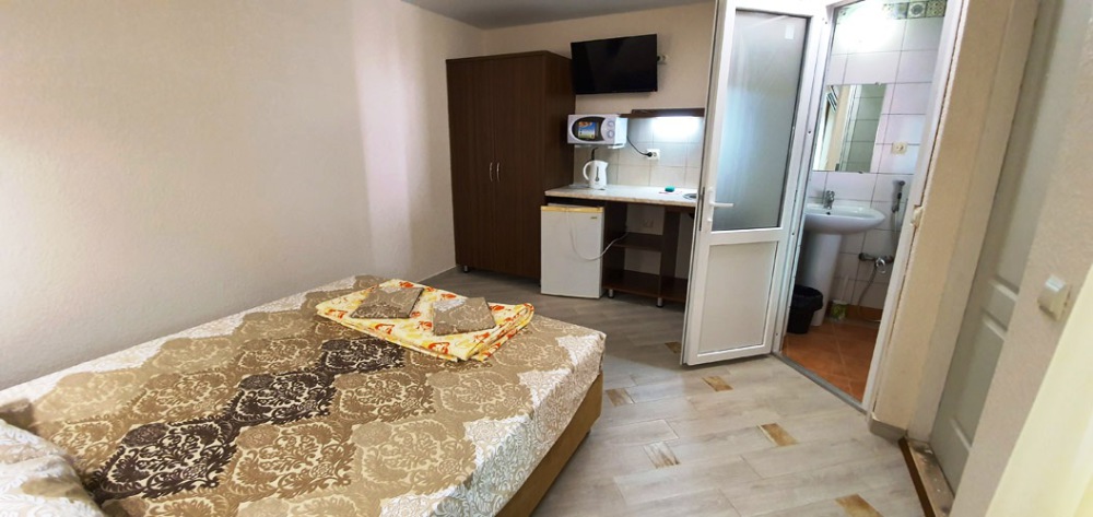 Гостевой дом находится в 20 метрах от берега моря. Всего несколько минут – и Вы сможете насладиться размеренным отдыхом на просторном песчаном пляже с чистейшей морской водичкой. А в 250 метрах расположено соленое озеро, богатое целебными грязями.