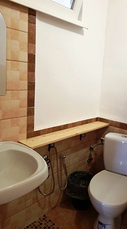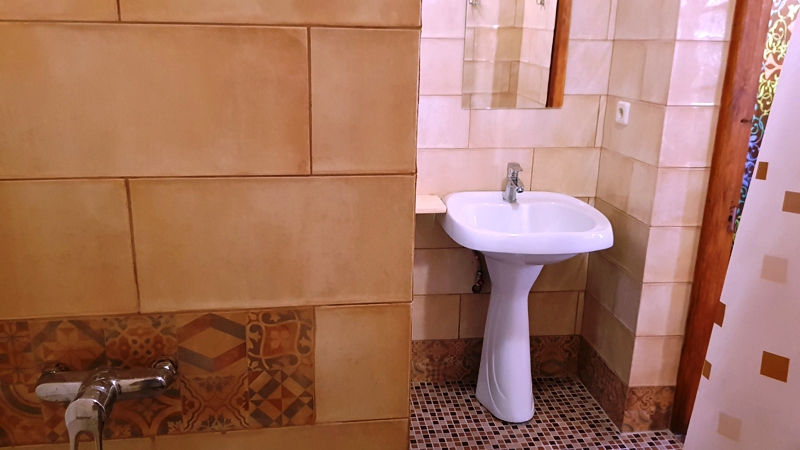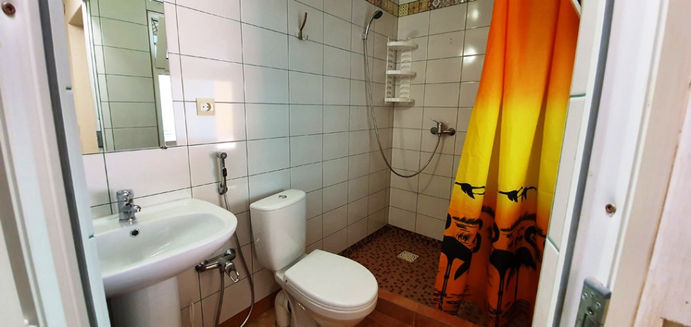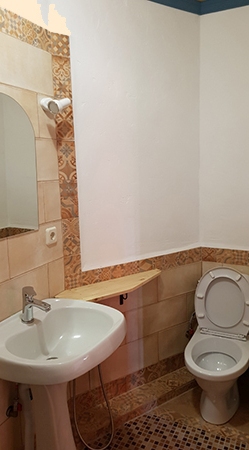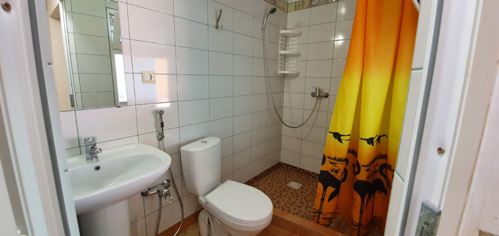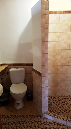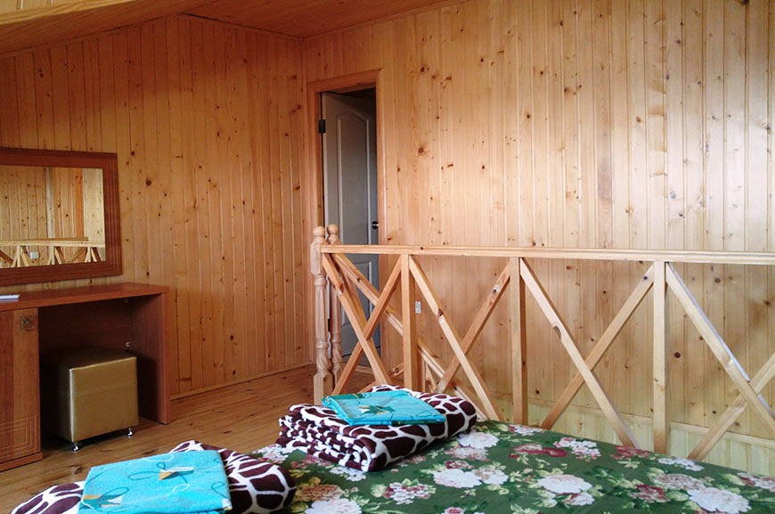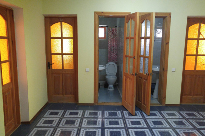 Холодильник в коридоре. Душевые и туалет во дворе (10 м).
