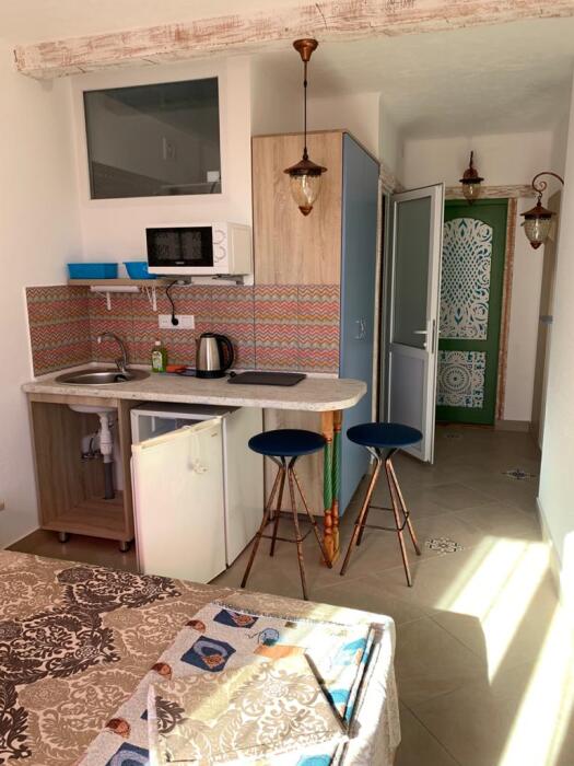 Однокомнатные апартаменты в восточном стиле с мини-кухней (2 чел). В номере есть микроволновая печь.
