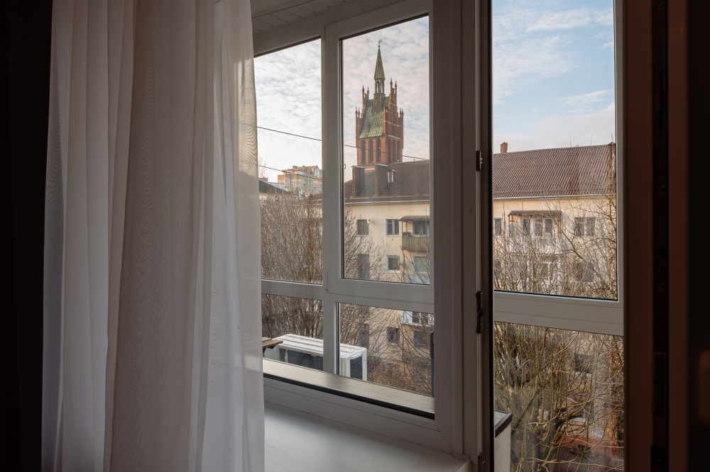 Квартира с качественным ремонтом. Изюминкой этой квартиры является её расположение у самой филармонии в здании бывшей кирхи Святого Семейства