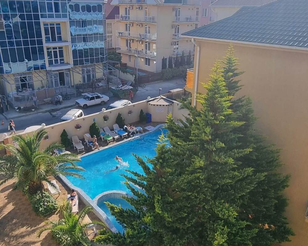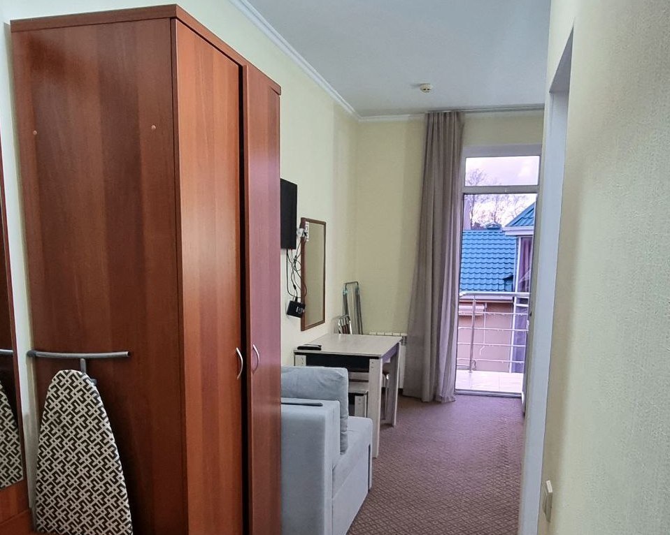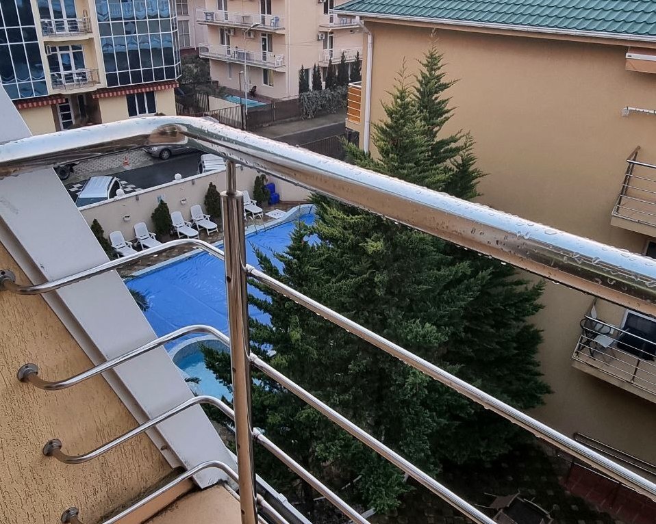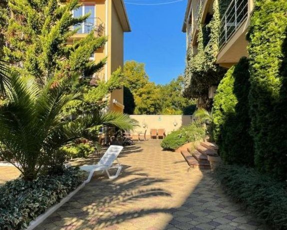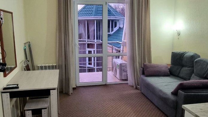 Квартира расположена в 4-х этажном доме 2018 года постройки. В квартире установлены панорамные окна, которые выходят на дворик отеля.