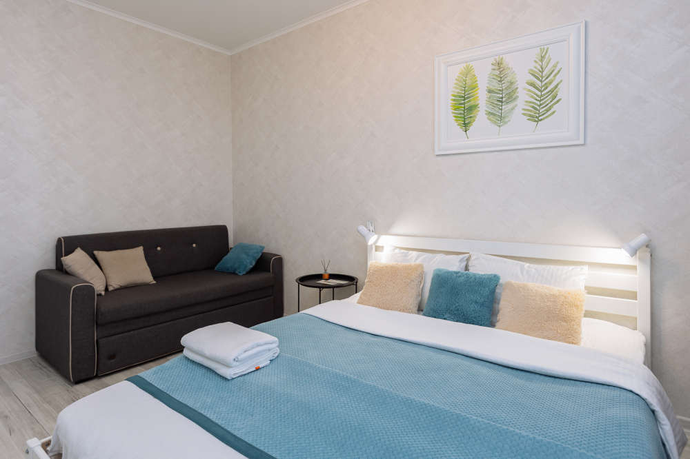 В комнате Вы сможете с отдохнуть на большой кровати с комфортным матрасом. А также на удобном диване за просмотром любимых фильмов.