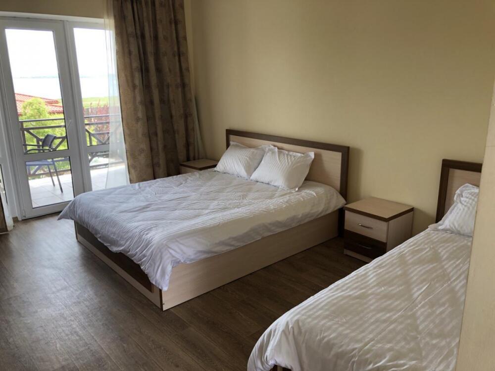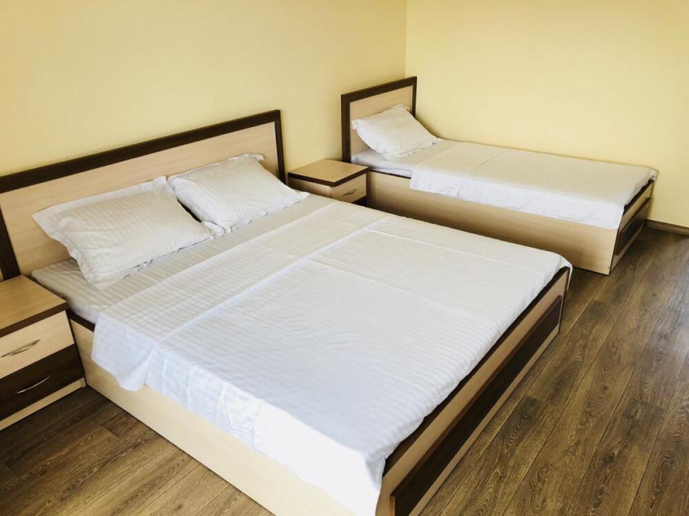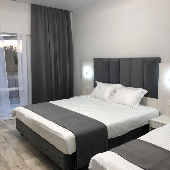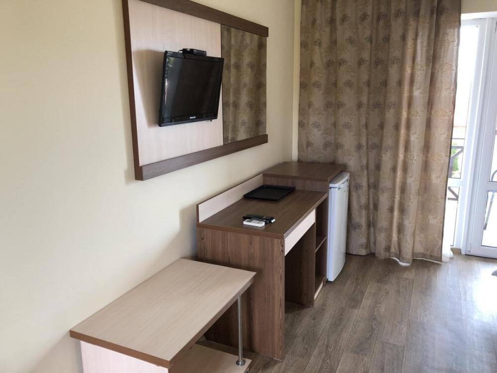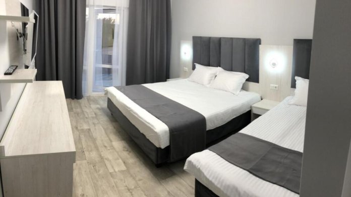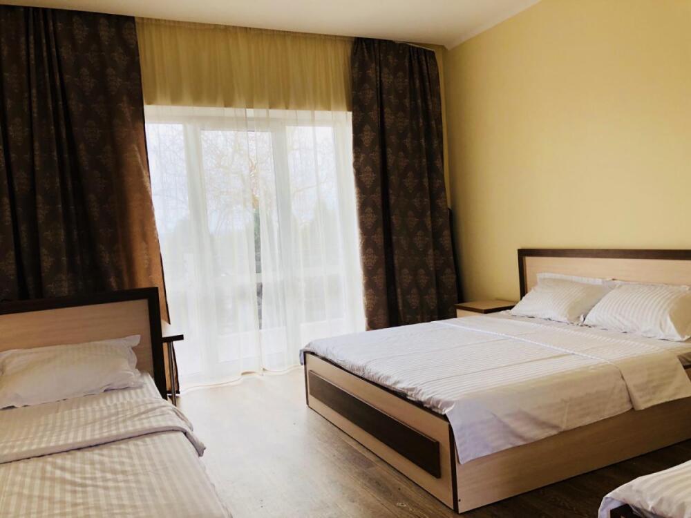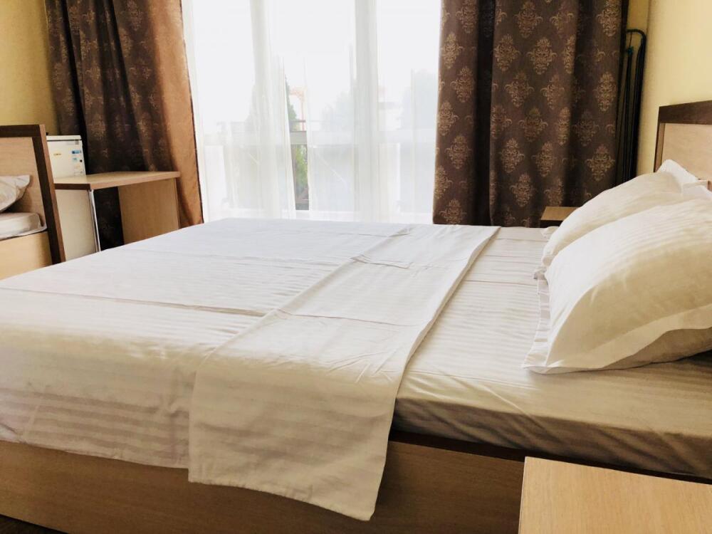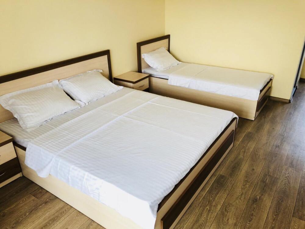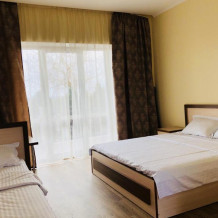 2, 3, 4-местные однокомнатные люкс номера, в каждом номере - телевизор, холодильник, кондиционер, мебель и санузел (туалет, раковина, душ). Холодная и горячая вода постоянно. В каждом номере также есть балкон с видом на море.