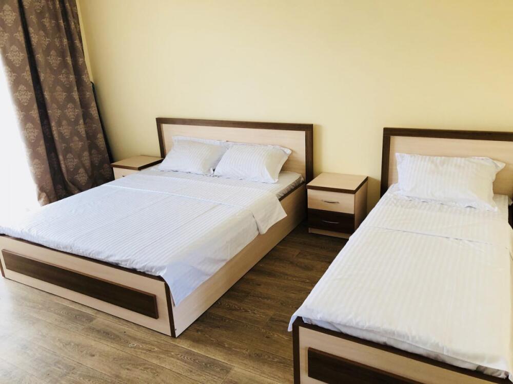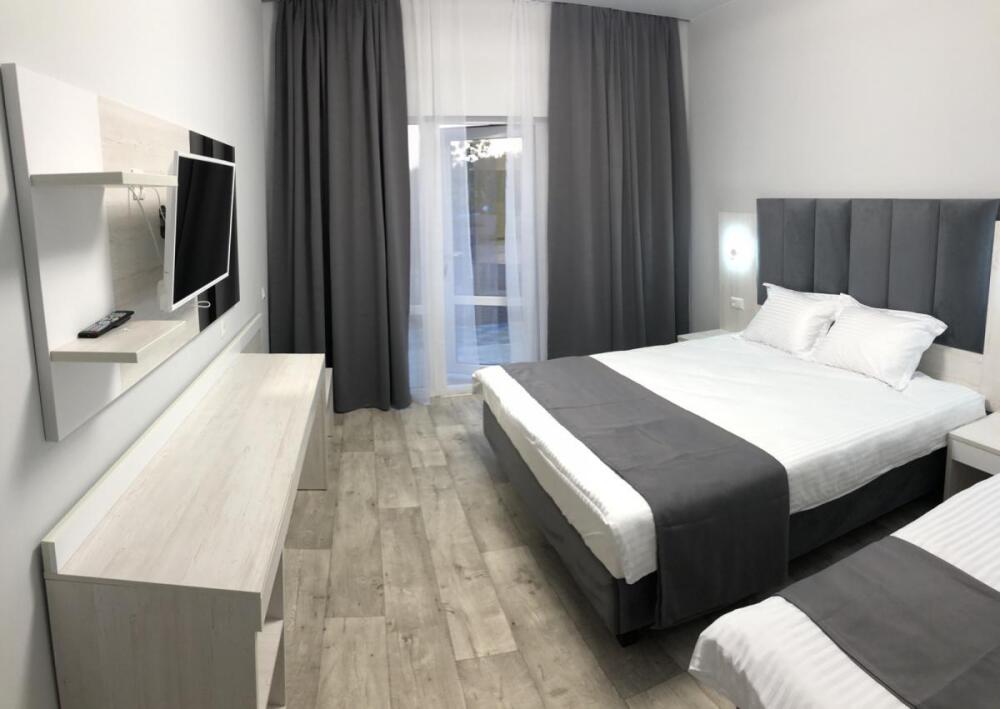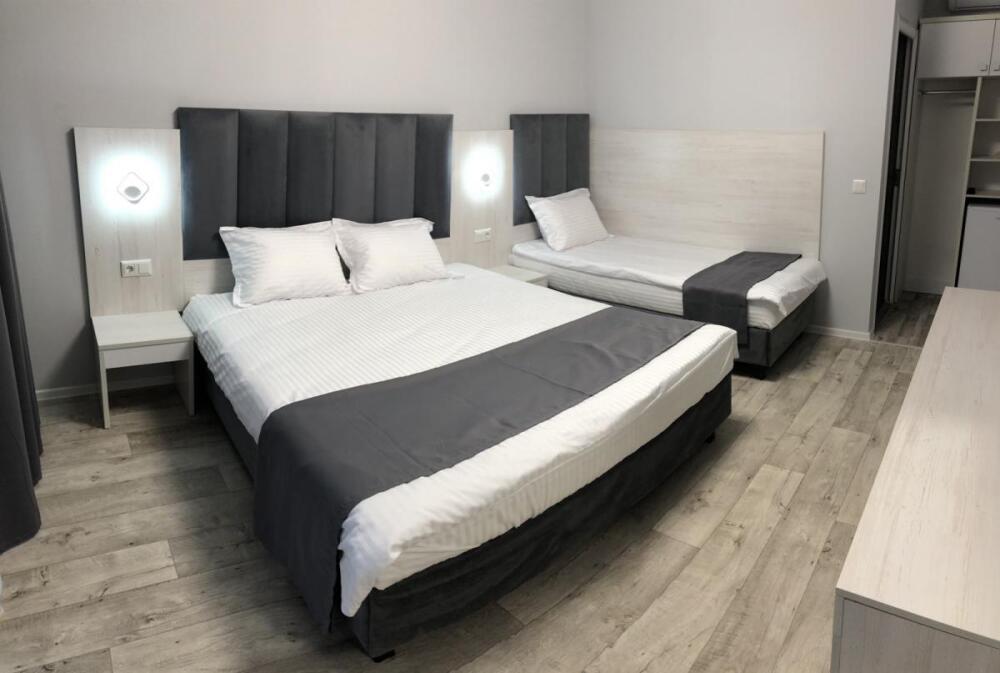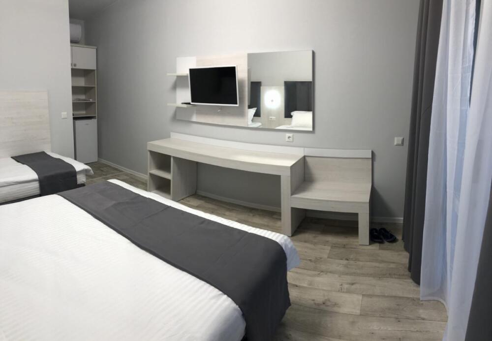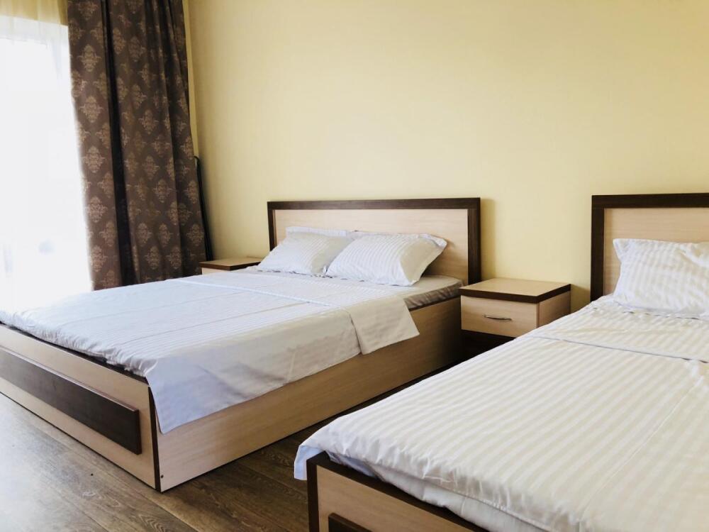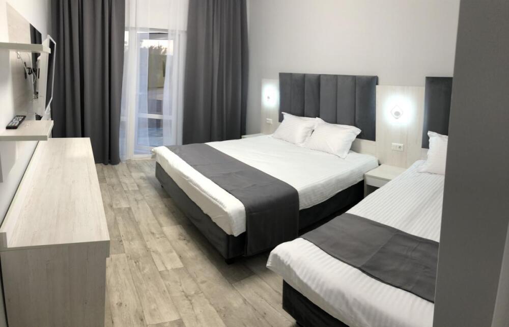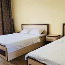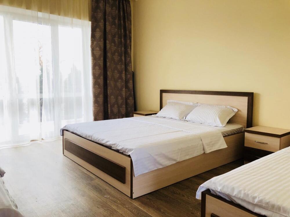 2, 3, 4-местные однокомнатные люкс номера, в каждом номере - телевизор, холодильник, кондиционер, мебель и санузел (туалет, раковина, душ). Холодная и горячая вода постоянно. В каждом номере также есть балкон с видом на море.