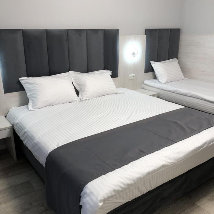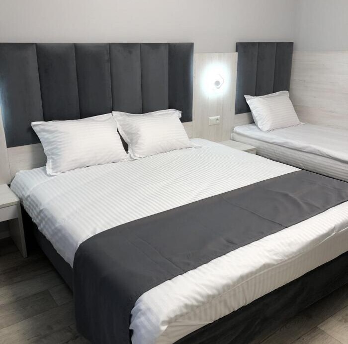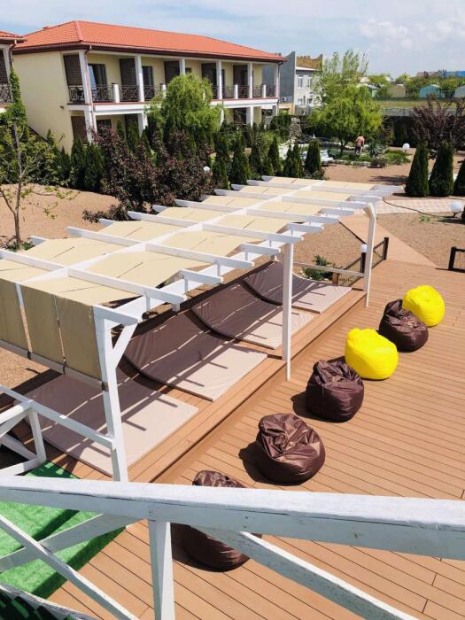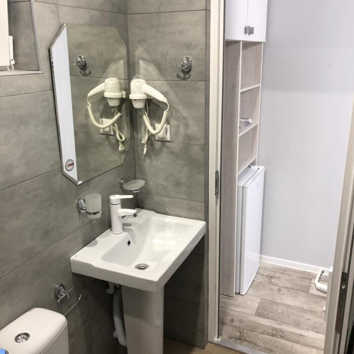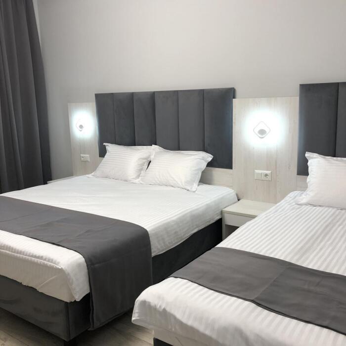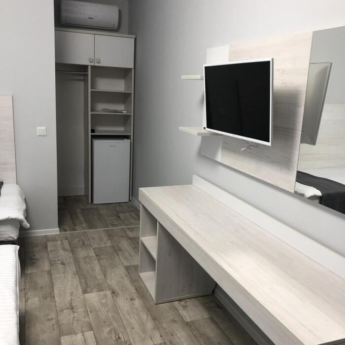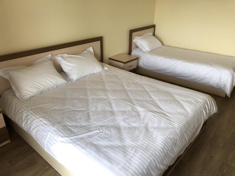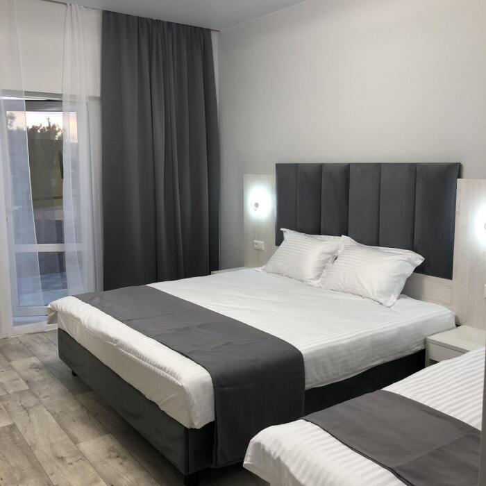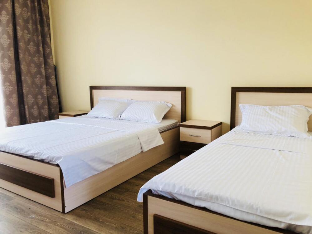 2, 3, 4-местные однокомнатные люкс номера, в каждом номере - телевизор, холодильник, кондиционер, мебель и санузел (туалет, раковина, душ). Холодная и горячая вода постоянно. В каждом номере также есть балкон с видом на море.
